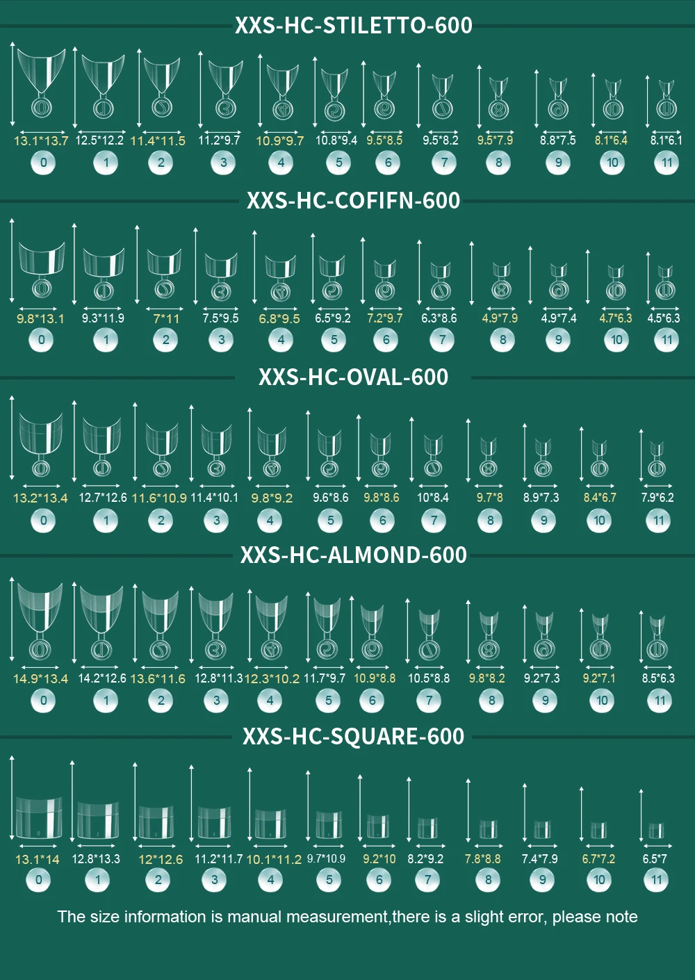 【SPECIFICATION】:Stiletto/Coffin/Square/Almond/Oval