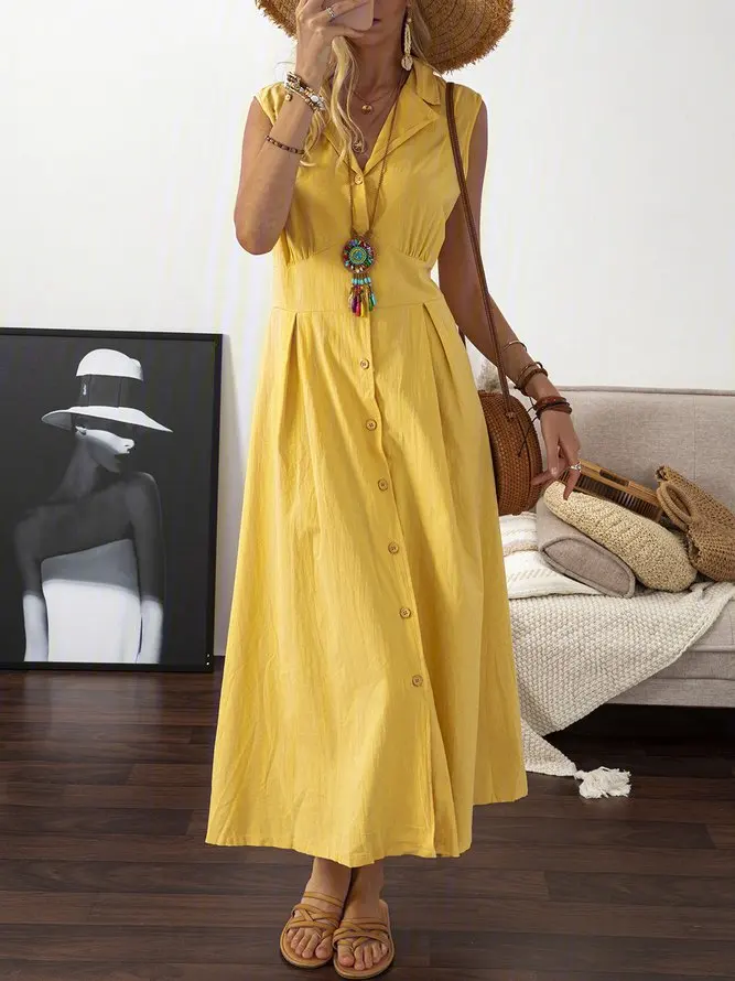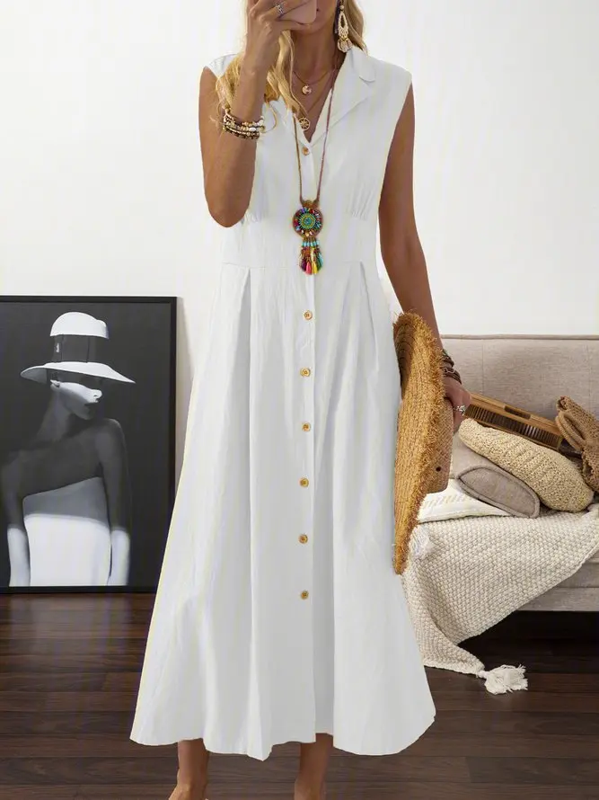 New Dresses 2025 Woman Fashion Lapel A-line Vintage Cotton Linen Long Skirt Women's Clothing Tops