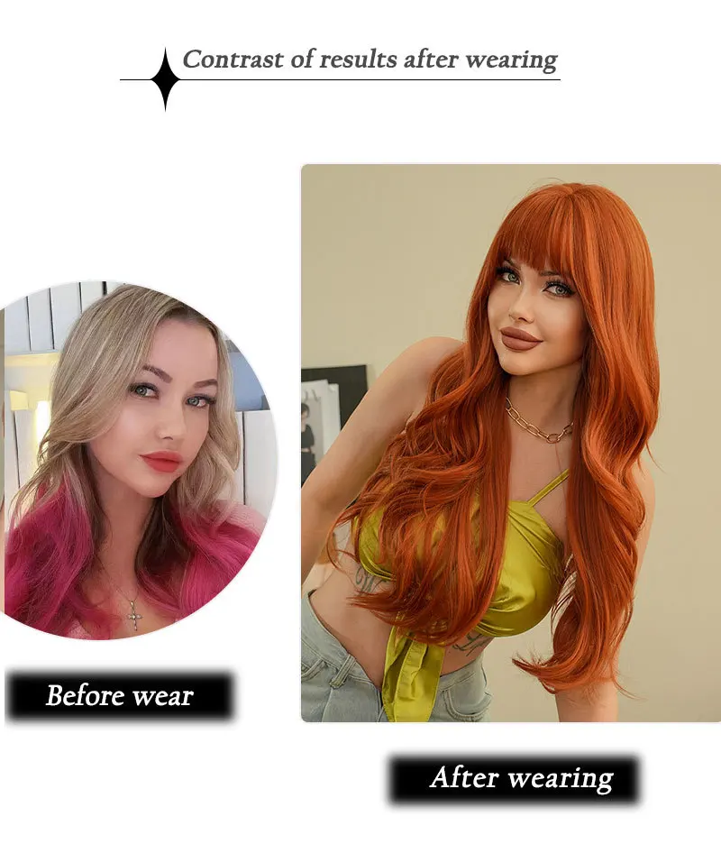 New fashion orange synthetic wig with fringe long curly hair festival daily wig high temperature silk full head cover