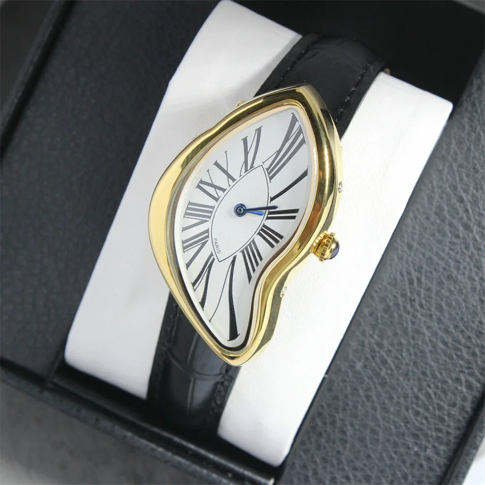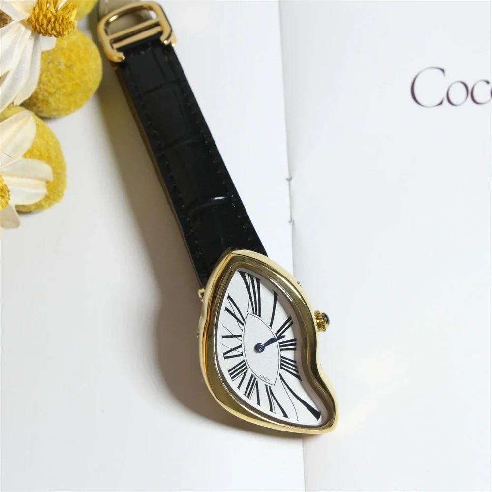 New Medieval alien watches melt and twist y2k alien ladies and men Leather strap fashion advanced ins niche design quartz watch