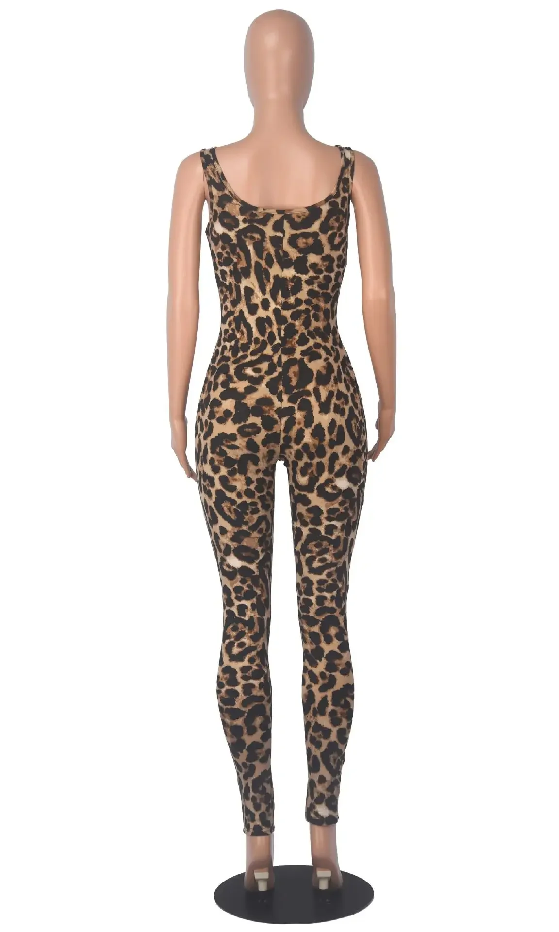 New Serpentine Leopard Print Y2k One Pieces Sleeveless Jumpsuit Fashion Clothes For Women Sexy Night Club Outfits