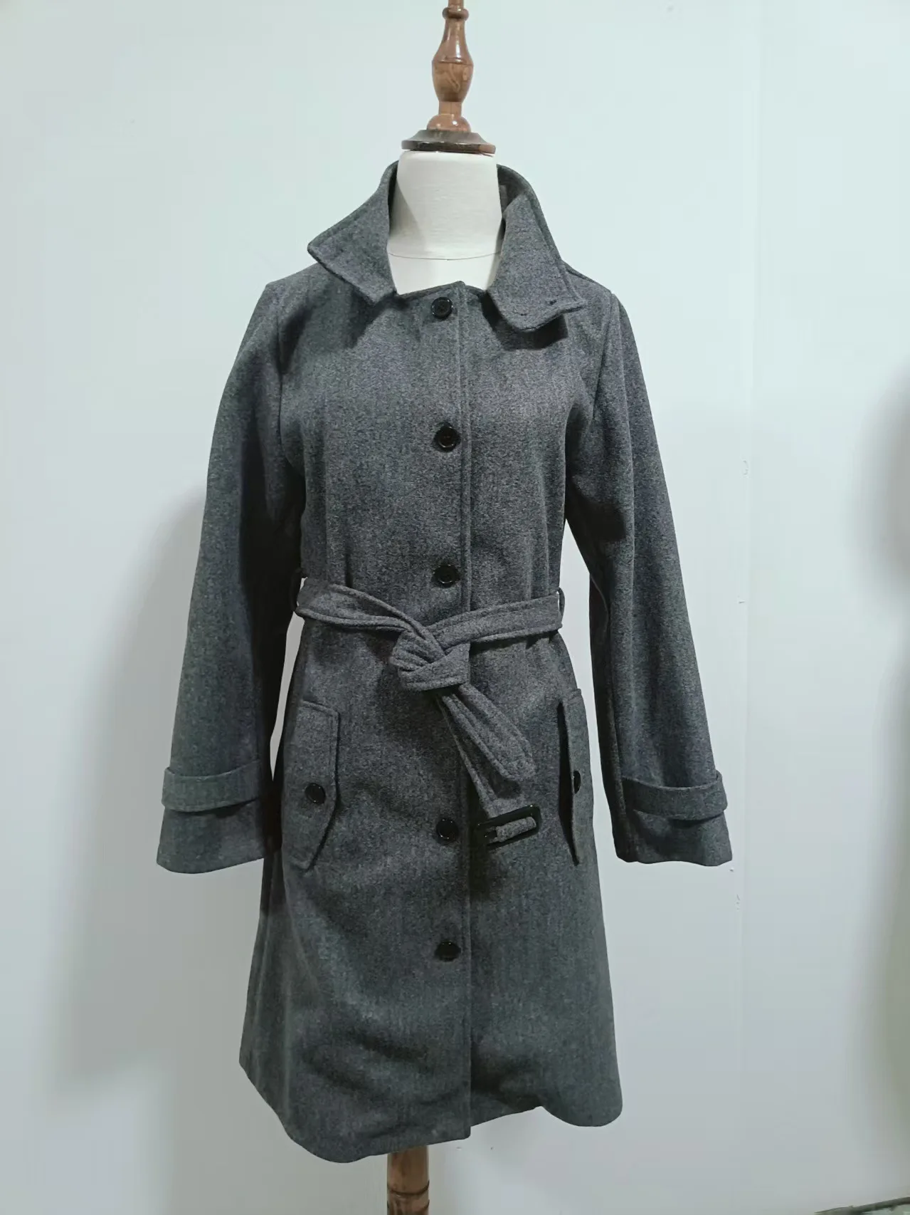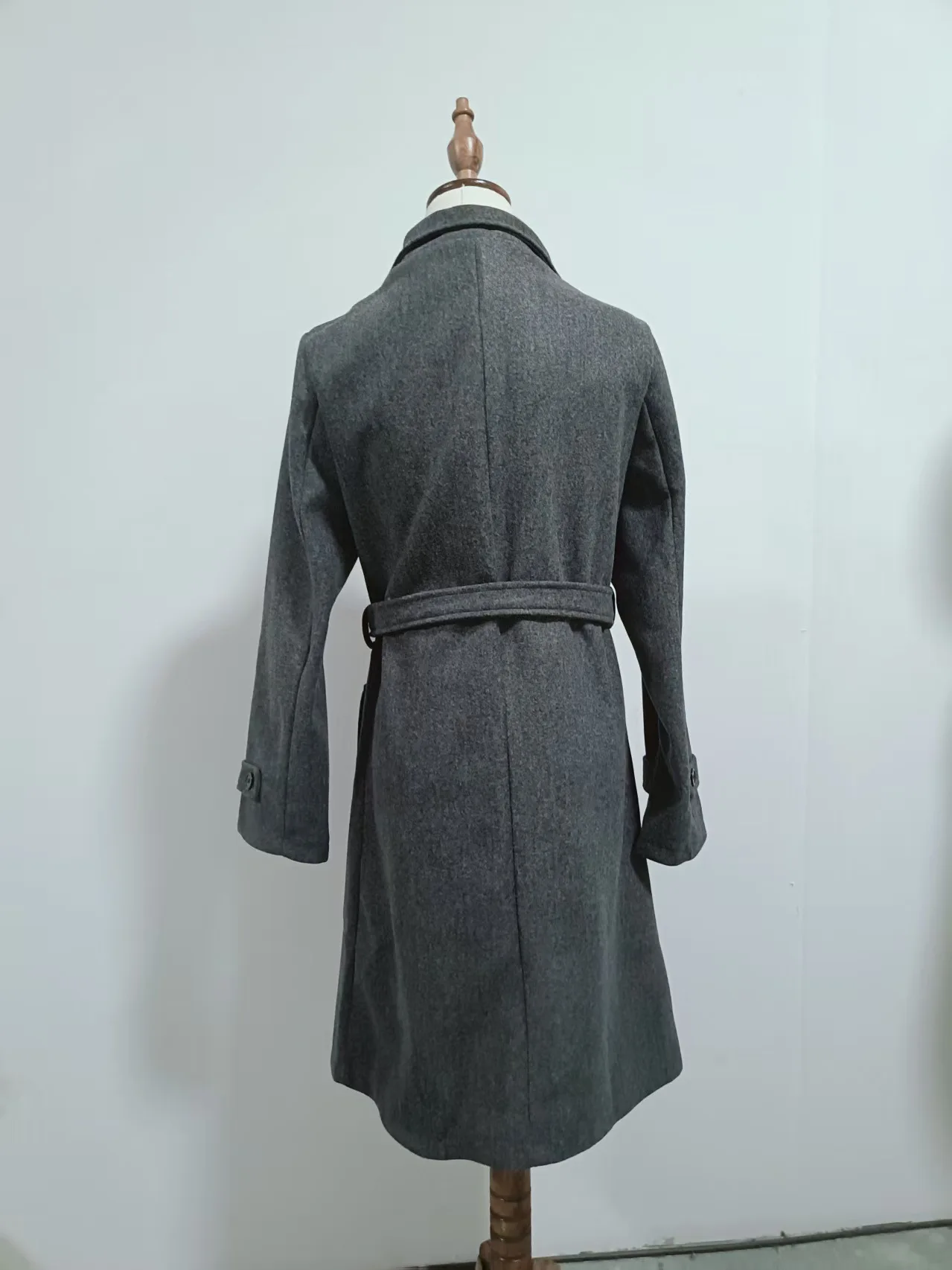 New Solid Color Button Long Wool Coat Autumn Warm Stand Collar Women Coat Fashion Ladies High Neck Pocket Belt Trench Coat