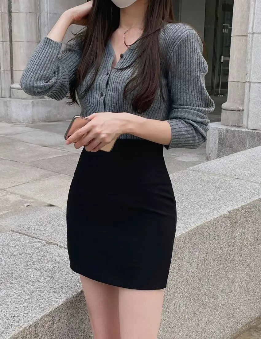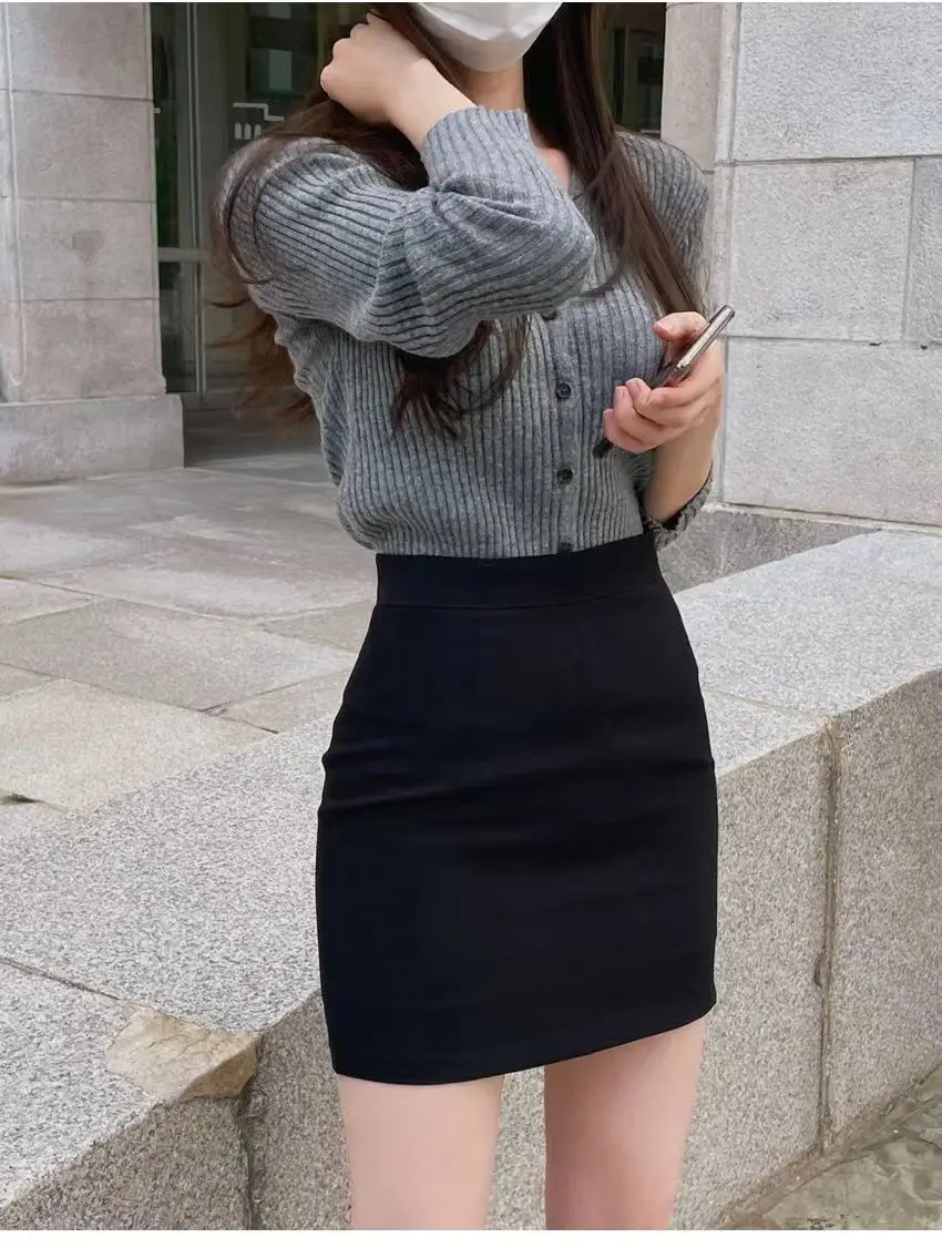 New style Office Women Hip Wrap Skirt Vintage Grey Tight Mini Skirt Korean Fashion High Waist Casual A Line Short Skirt Y2K