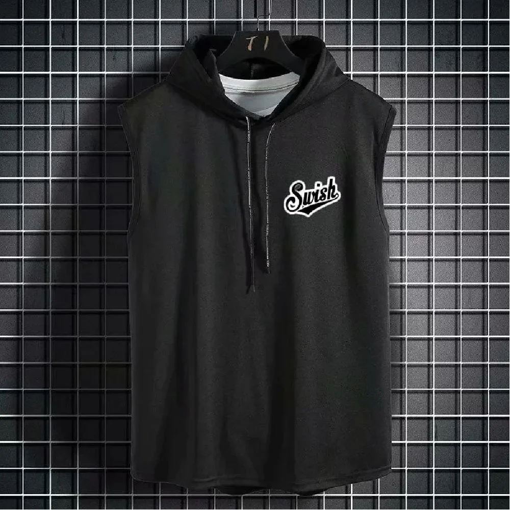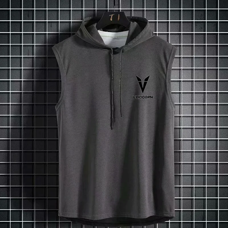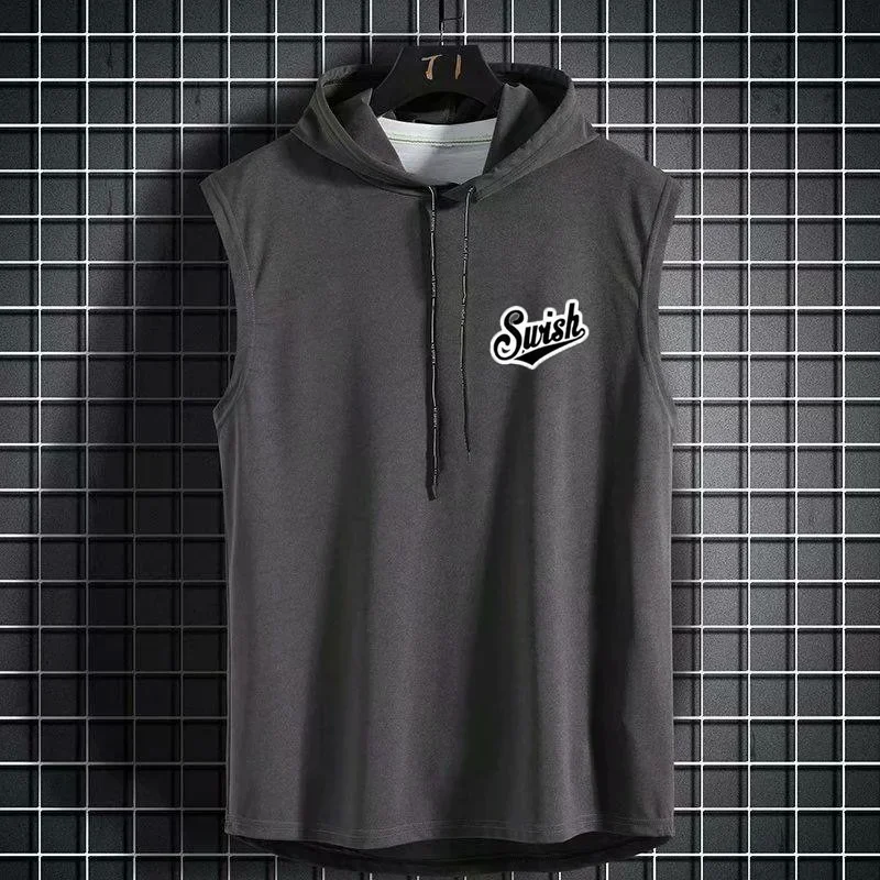 New Summer Hooded Sweatwear New Mens Short Sleeve Loose T-shirt Solid Color Lightweight Hoodie Fitness Breathable Collar Tops