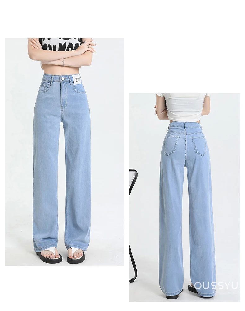 New Summer Soft Lyocell Jeans Women Blue Khaki White High Waist Straight Thin Wide Leg Denim Pants Y2k Loose Female Clothing 2XL
