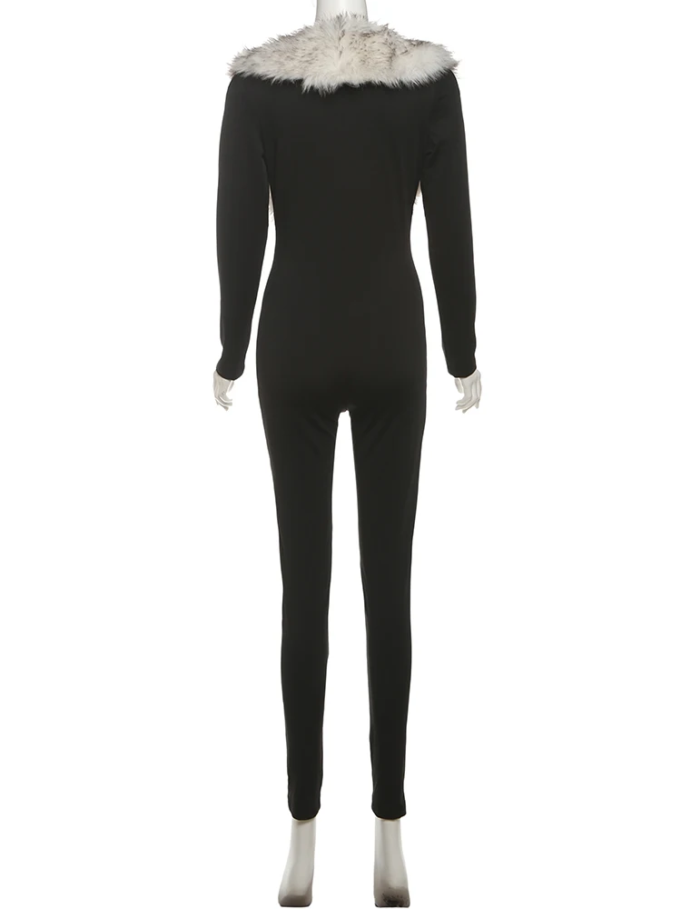 Nibber Autumn Trend Sexy Junpsuits+Furry Foot Cover Woman Low-Neck Full Sleeve Skinny Peach Hip Midnight Party Fashion Clubwear