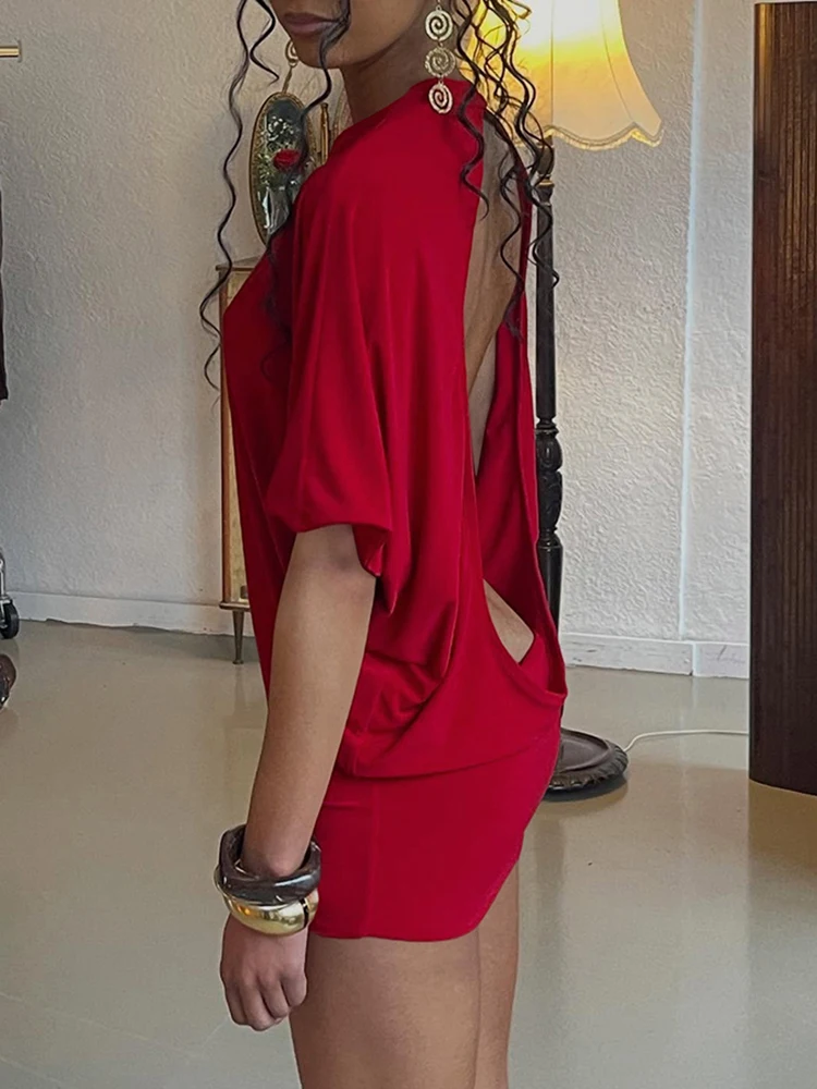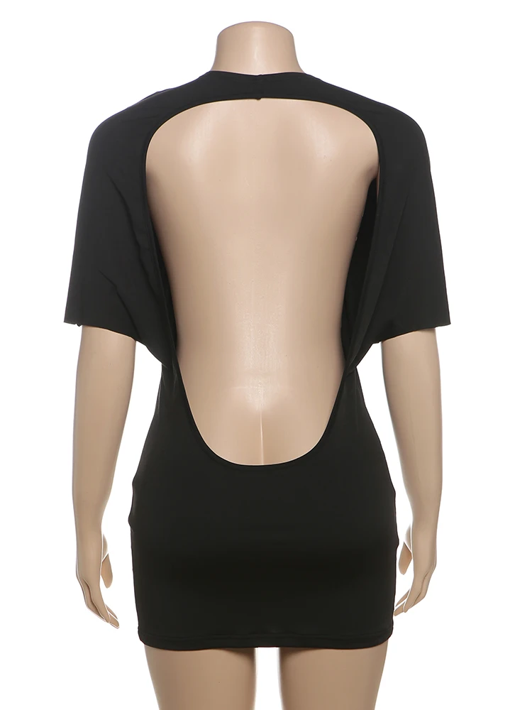 Nibber o-Neck Sexy Backless Mini Dress Women Y2K Solid Trend Style Half Sleeve Spicy Girls Street Midnight Fashion Slim Outfits