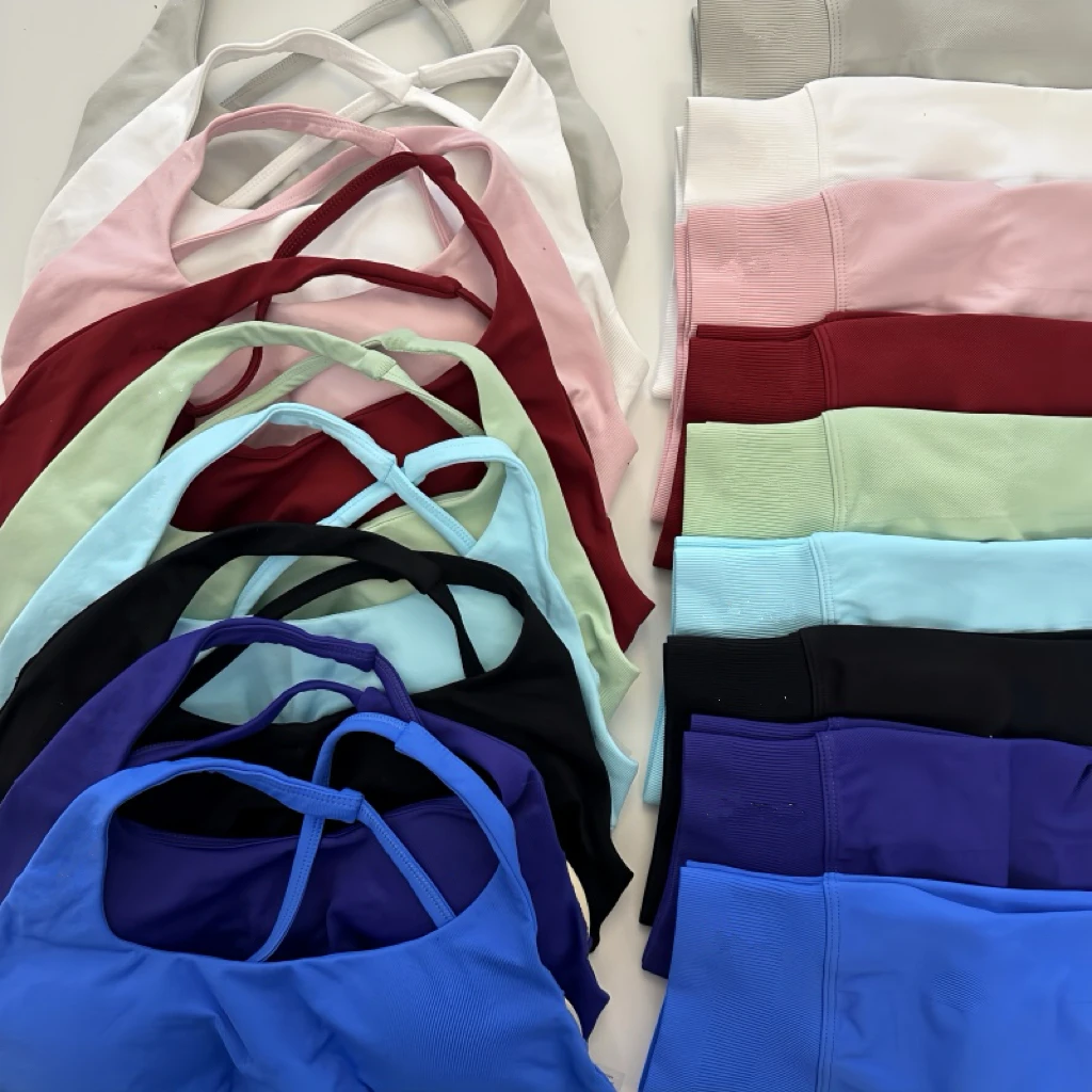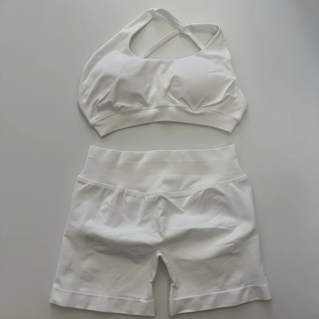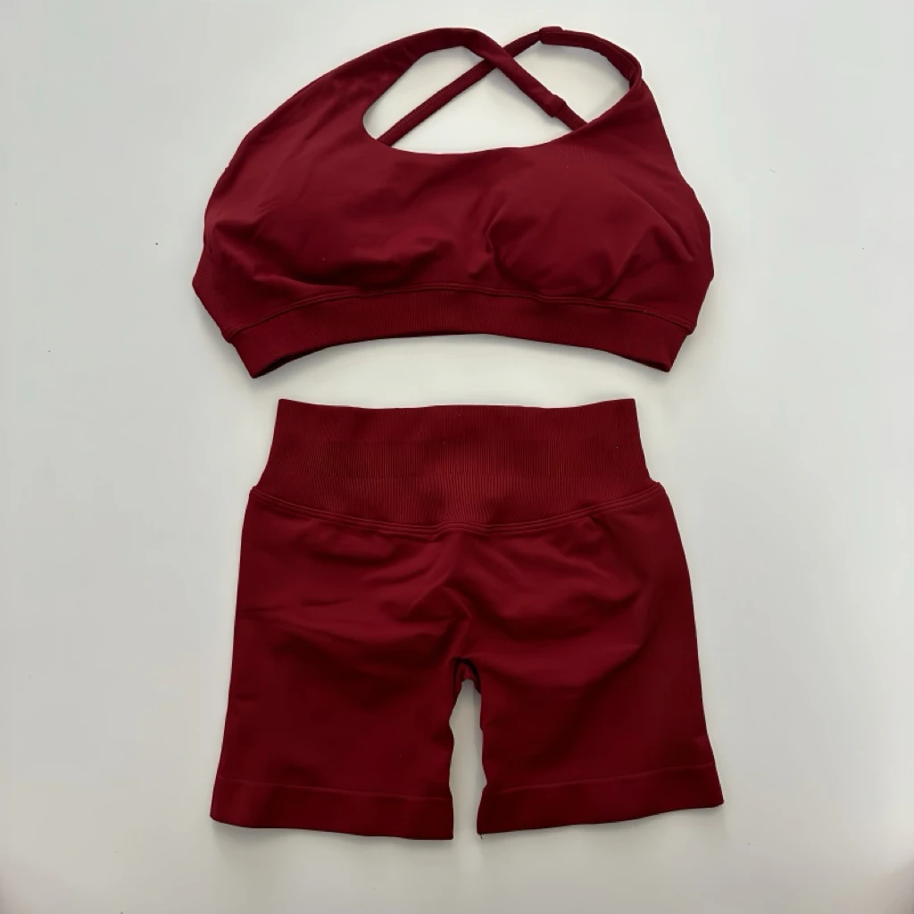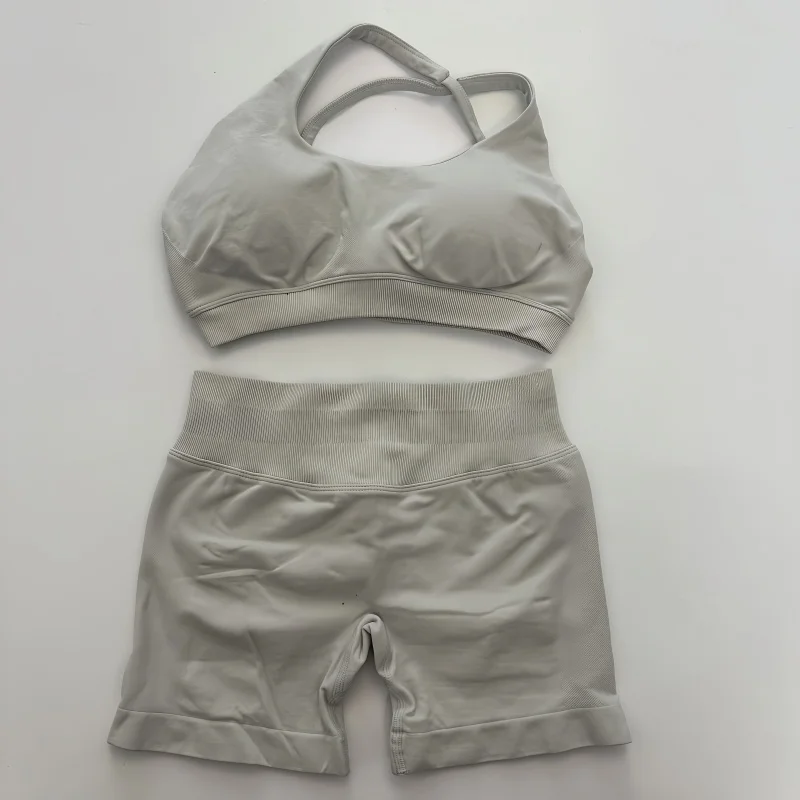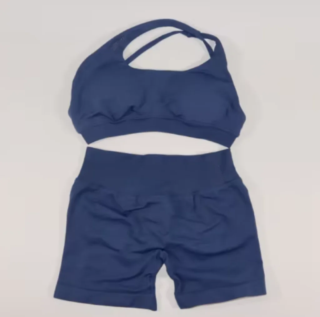 No Logo Yoga Asymmetric Gym Set Women Seamless Yoga Set Workout Shorts Sets Halter Sports Bra Scrunch Bum Shorts Fitness Clothes