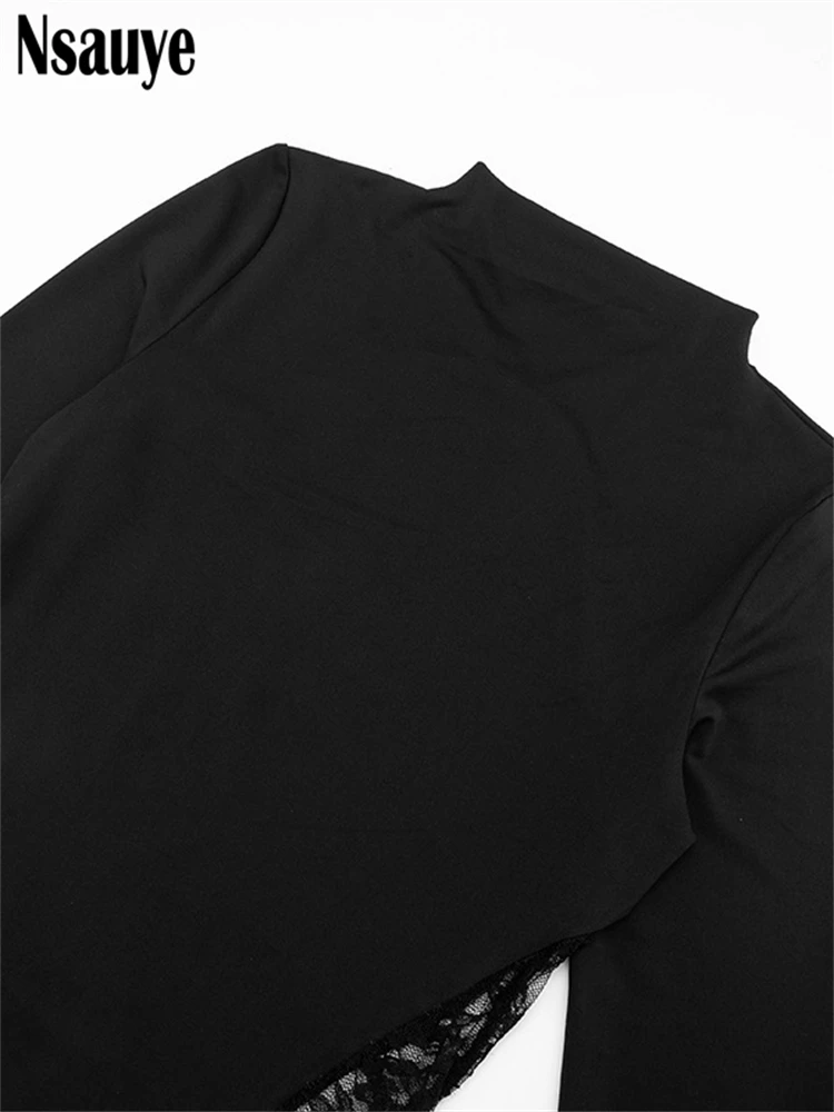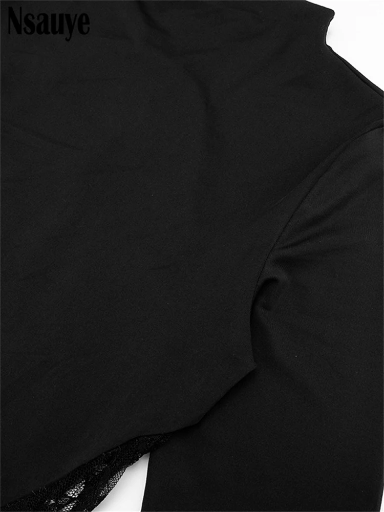 Nsauye Sexy Hollow Out Backless Lace Patchwork Slim Maxi Dresses For Women 2025 Autumn Winter Long Sleeve Long Dress Club Party