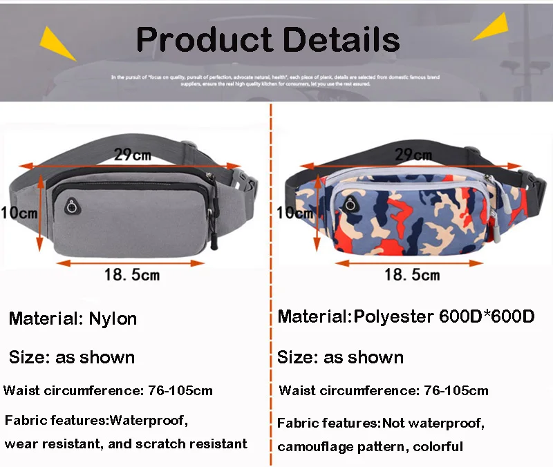 Model Number: Men Women Nylon Waterproof Fanny Waist Bag Pack Male Belt Pouch Belly