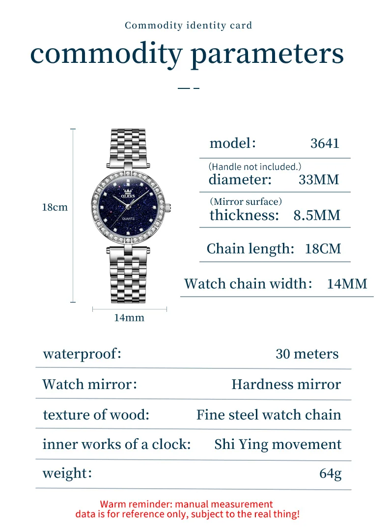 OLEVS 3641 Womens Watch Original Elegant Quartz Watch Waterproof Luminous Stainless Steel Starry Dial Ladies Watch With Box Gift