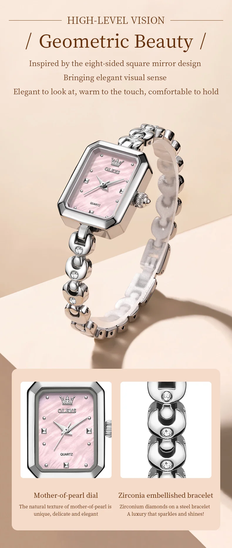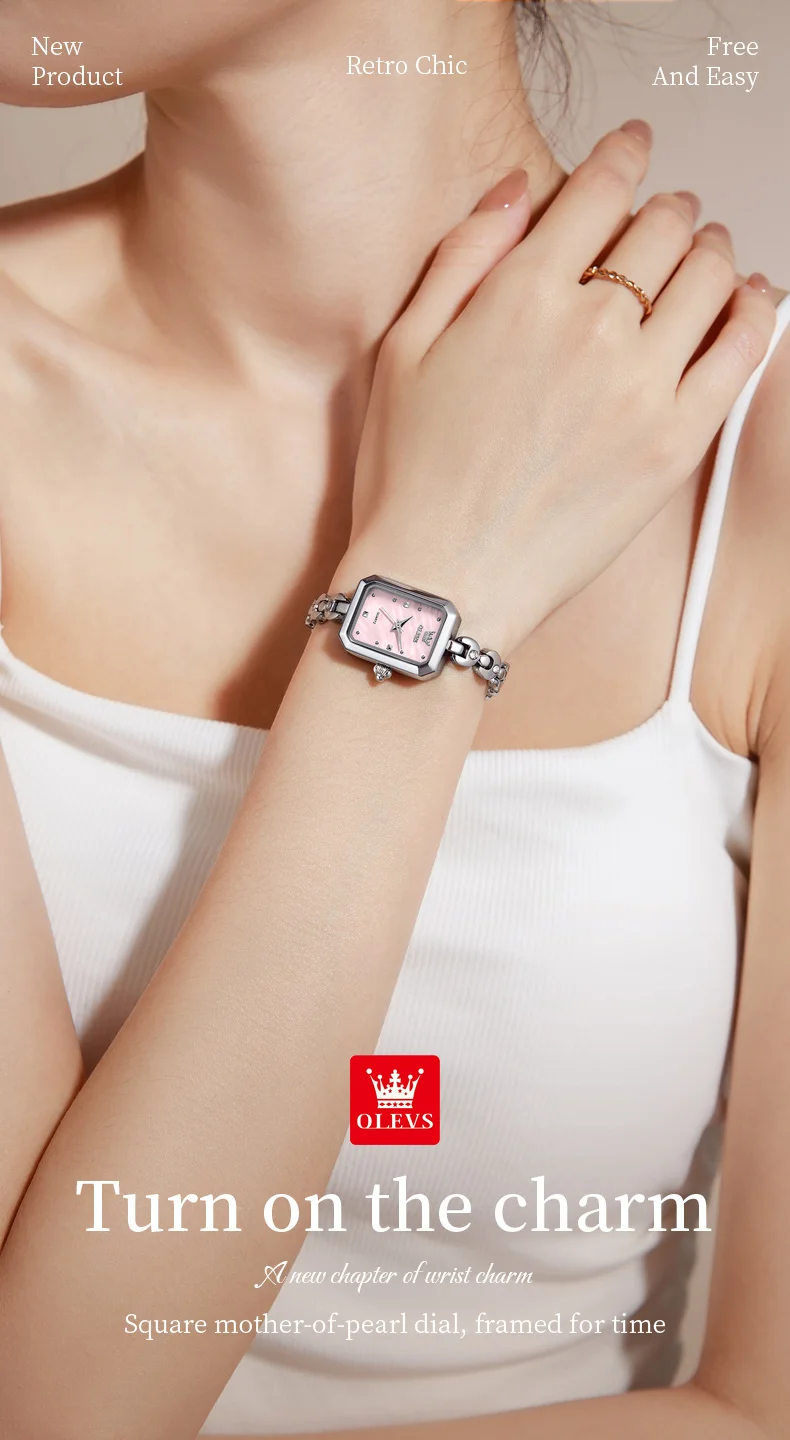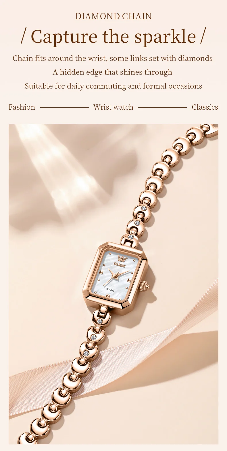 OLEVS 3665 Woman Watches Original Elegant Fashion Square Quartz Watch Chain Bracelet Ladies Watch Bracelet Gifts New Reloj Mujer