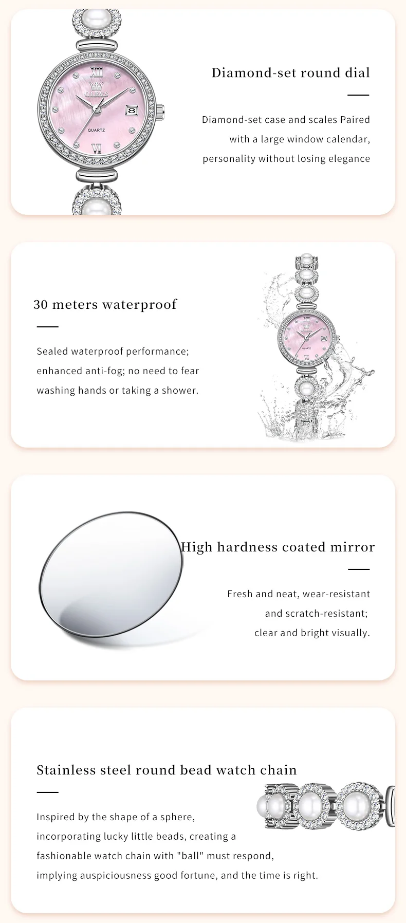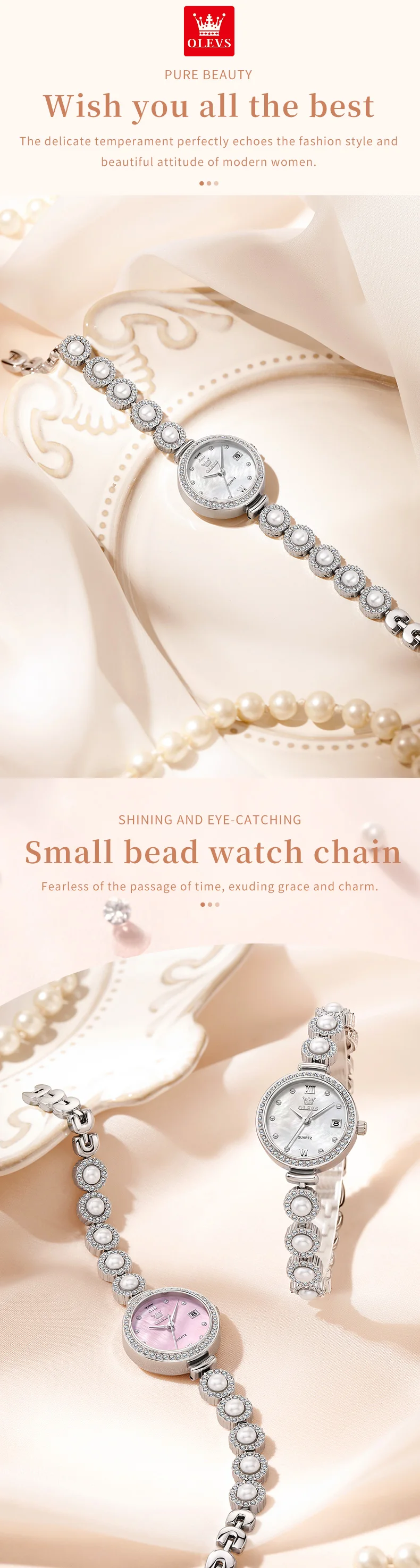 OLEVS 5635 Fully Diamond Pearl Hand Chain Watch Fashion Elegant Waterproof Women's Watches Original Quartz Wrist Watch for Women
