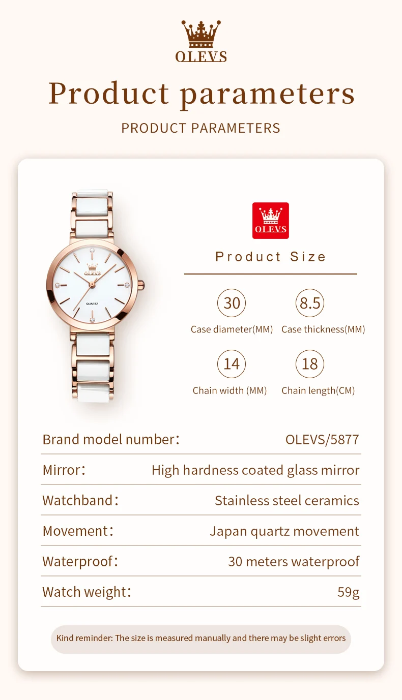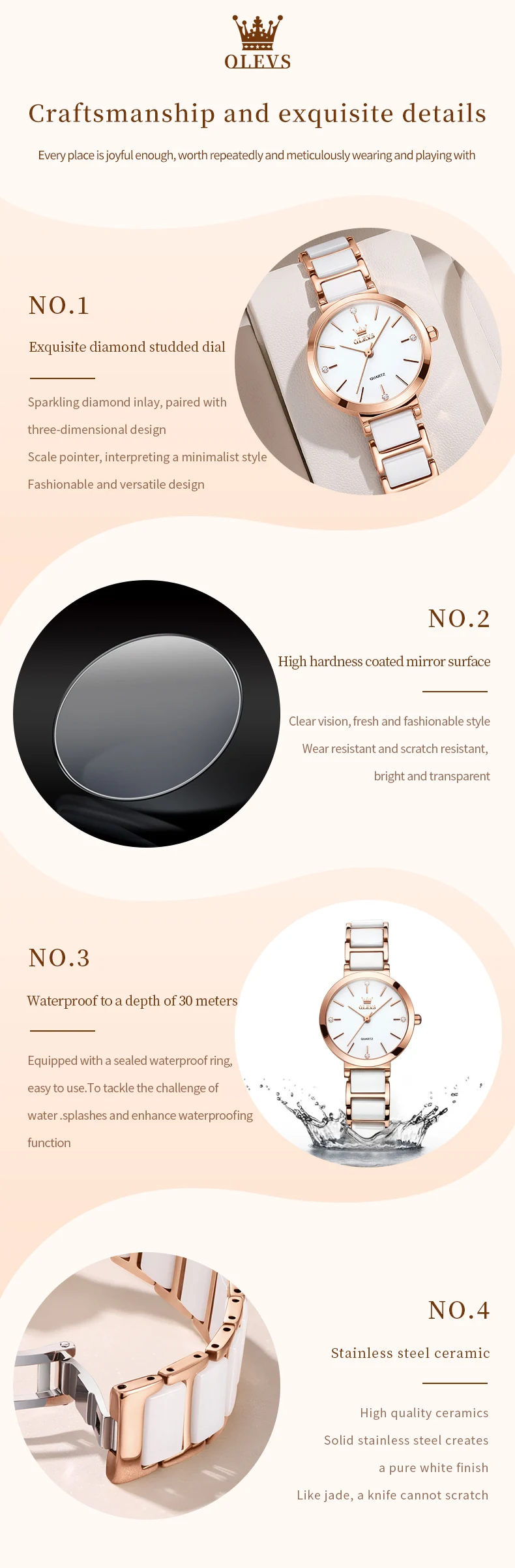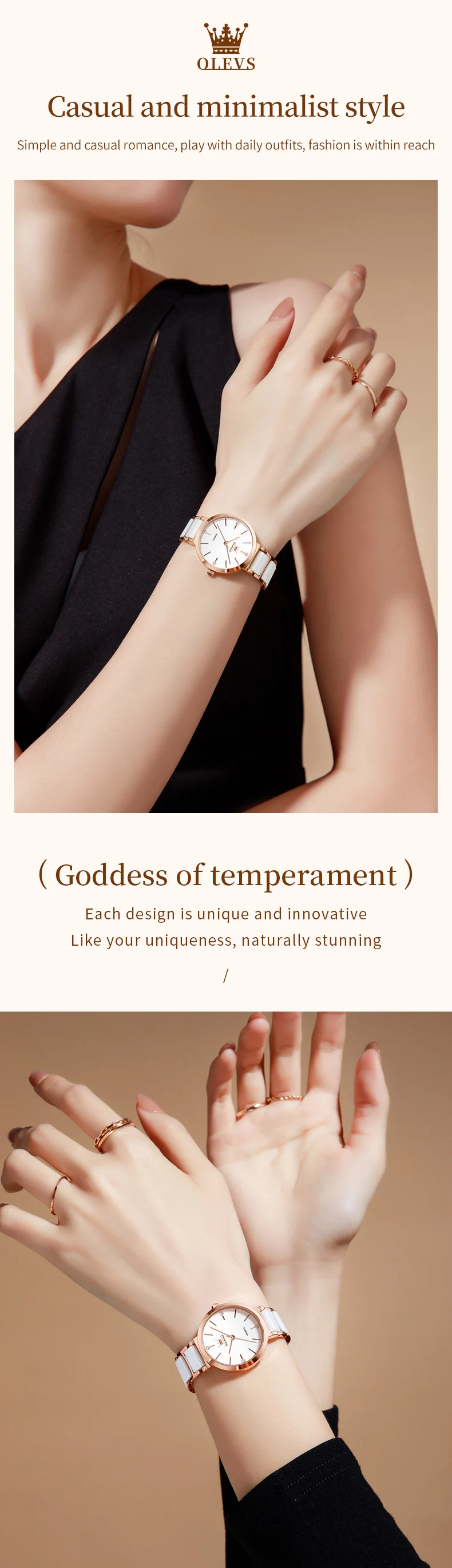 OLEVS 5877 Japan Quartz Movement Woman Watch Simple Elegant Luxury Rose Gold Ceramics Strap Waterproof Ladies Dress Wristwatch