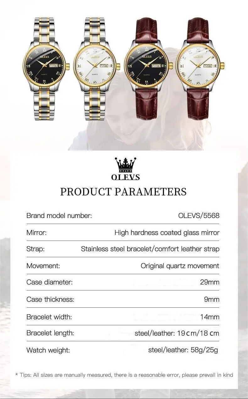 OLEVS Brand Belt Style Double Calendar Quartz Women's Watch 5582