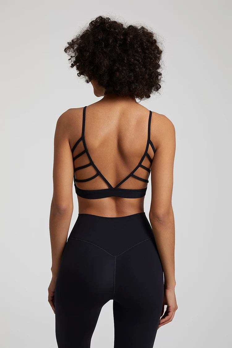 Open Back Sports Bra 8 Way Stretch Deep U Neck Bra Padded Fitness Top for Women