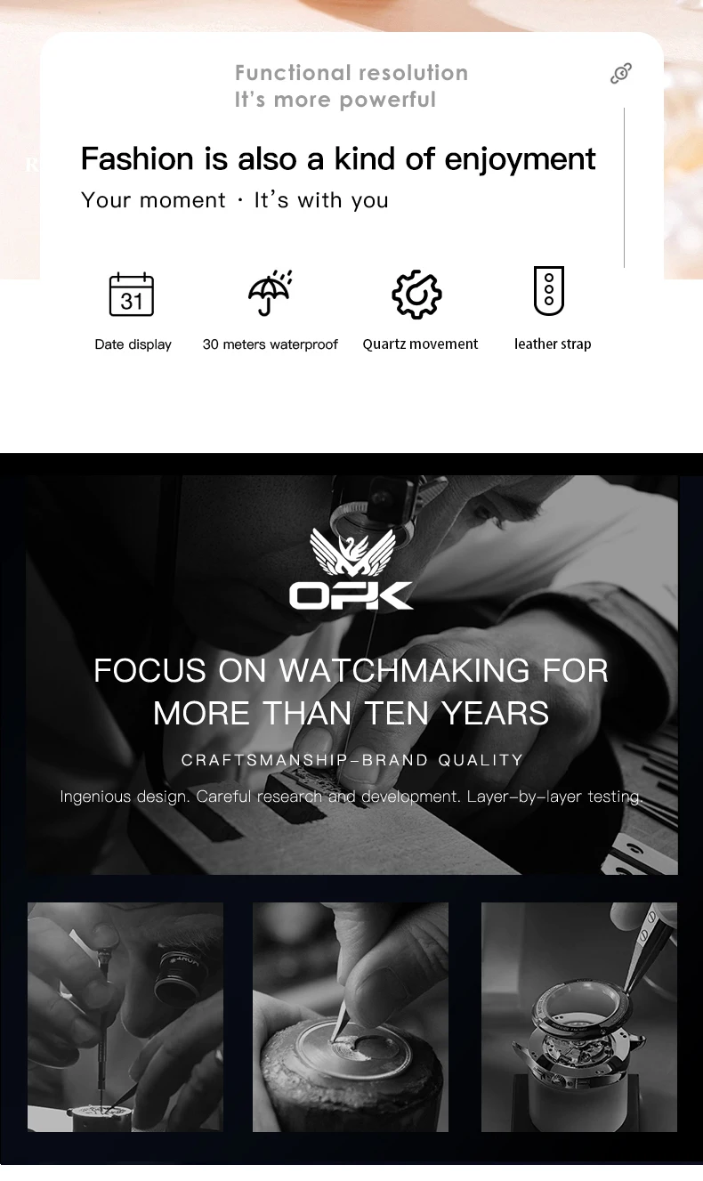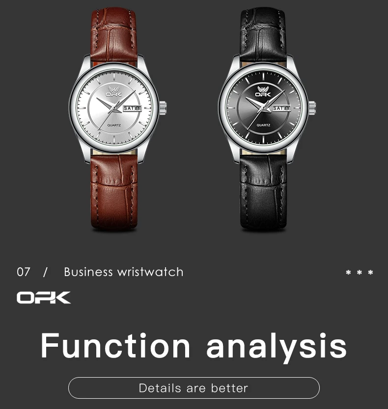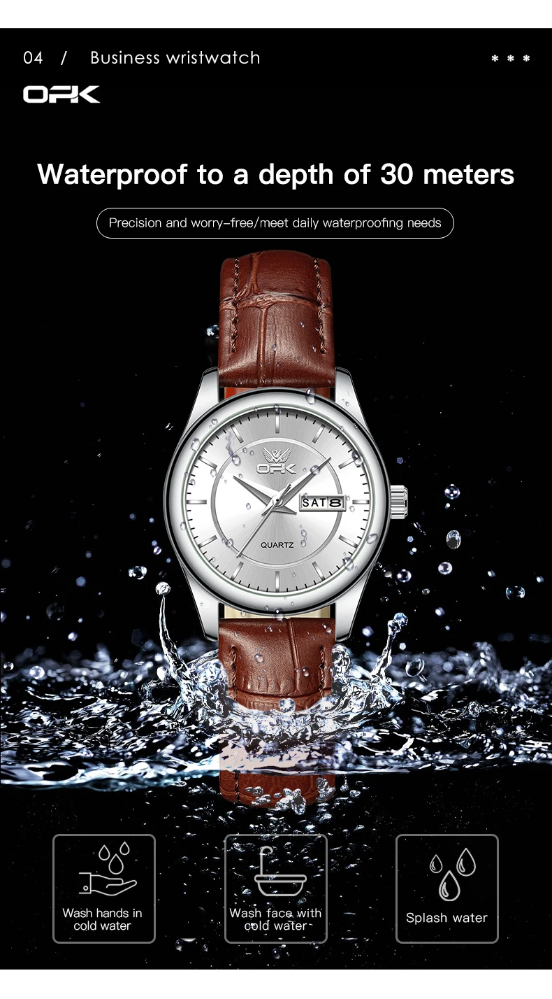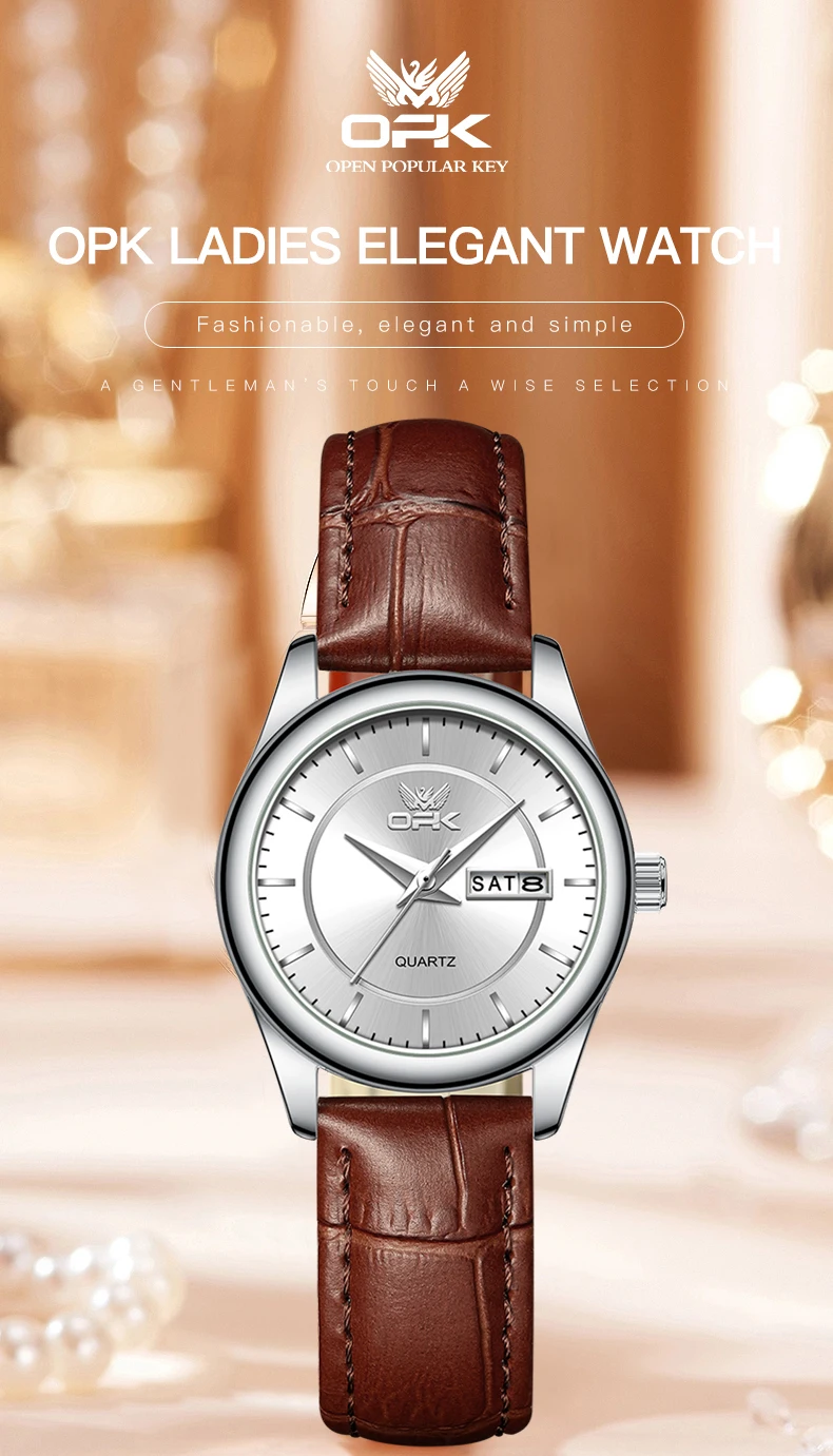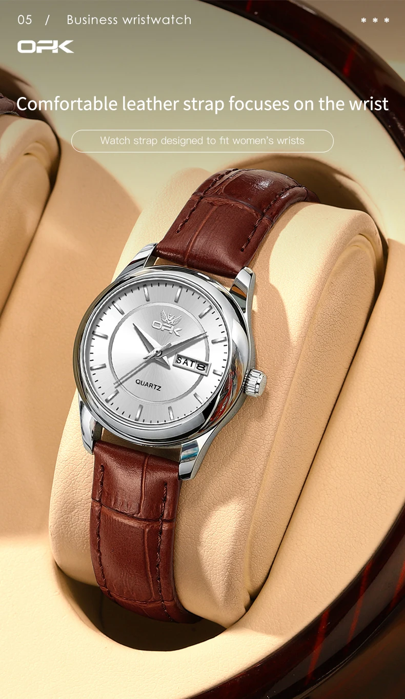 OPK Brand Women's Watch Fashion Double Calendar Quartz Waterproof Night Light 6002