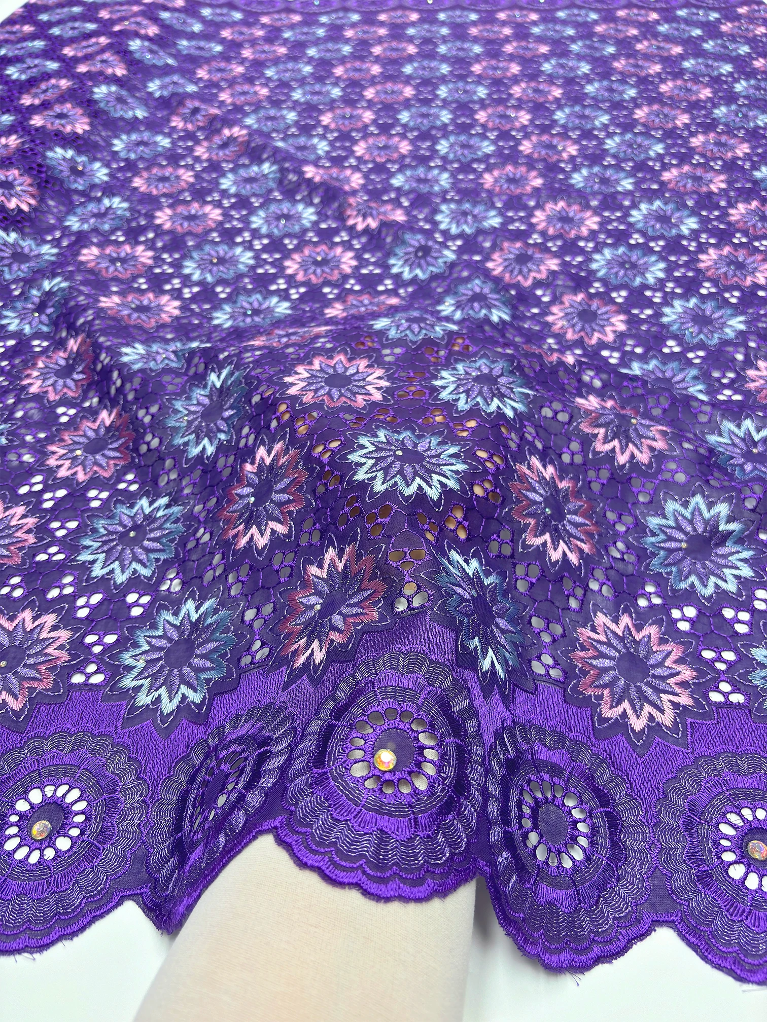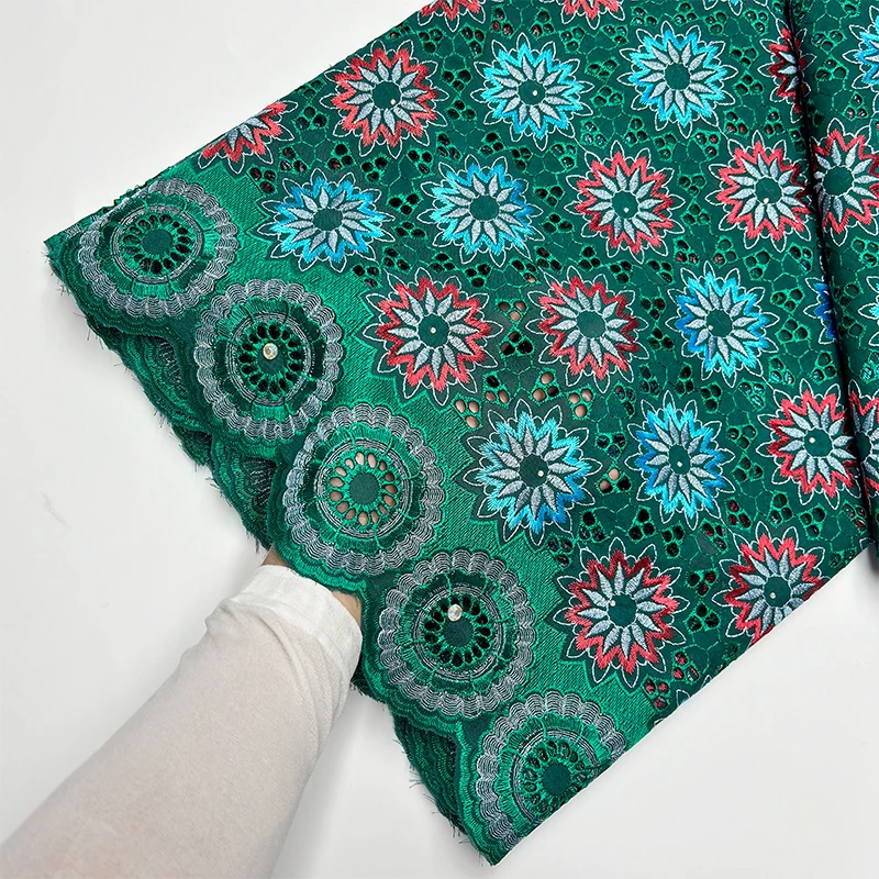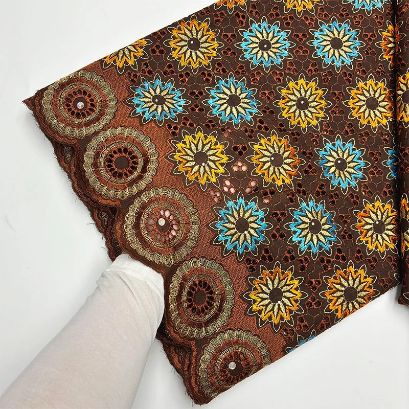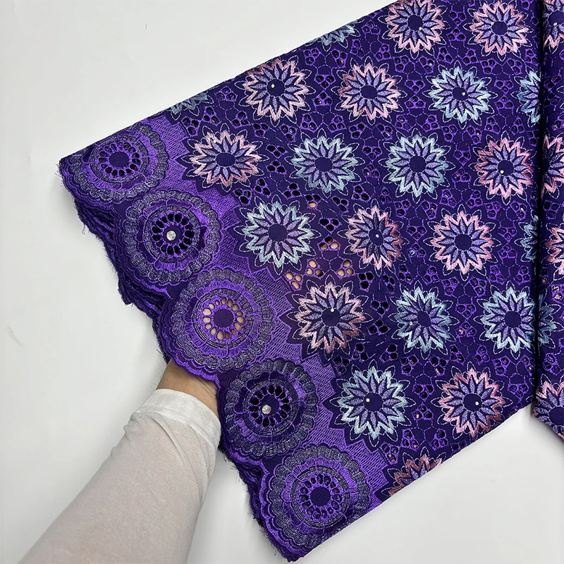 Original Austria Pure Cotton Lace Fabric 2024 High Quality Swiss Voile Embroidery Stones Lace Fabric For Women Celebration Dress