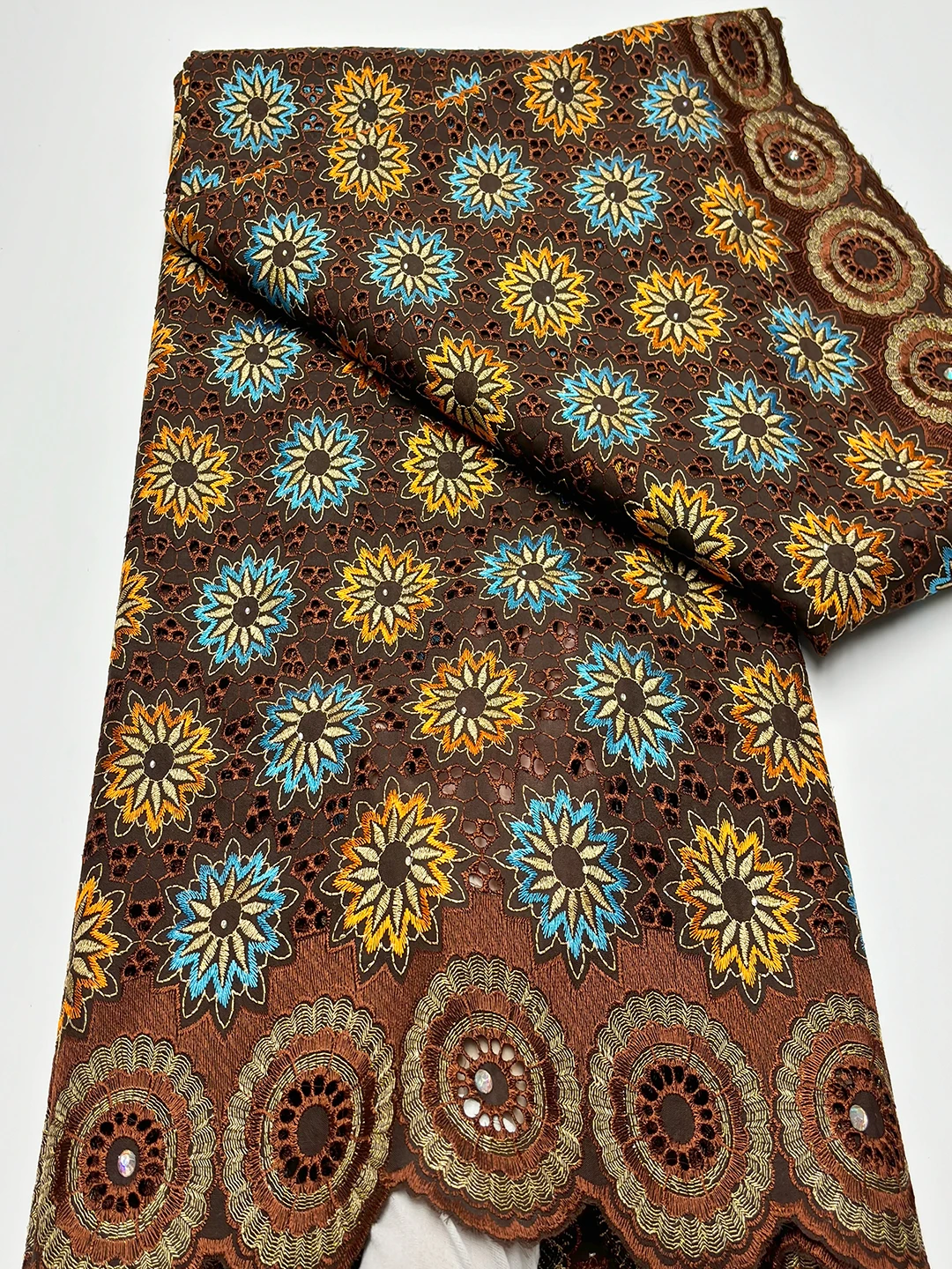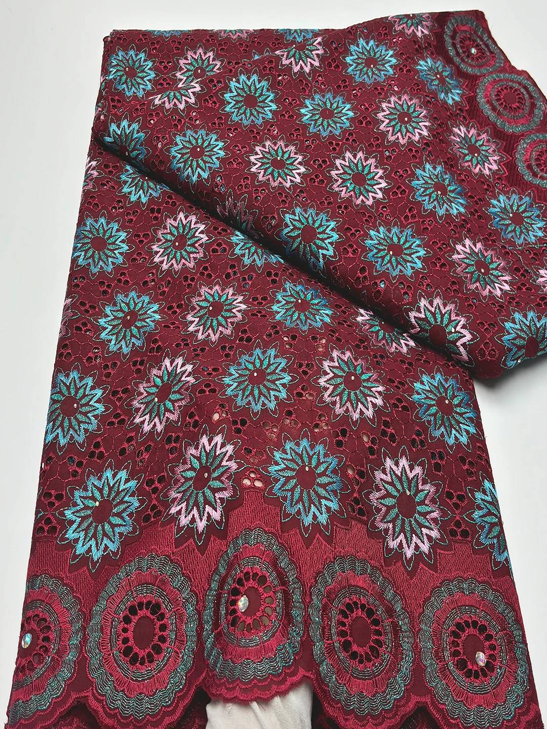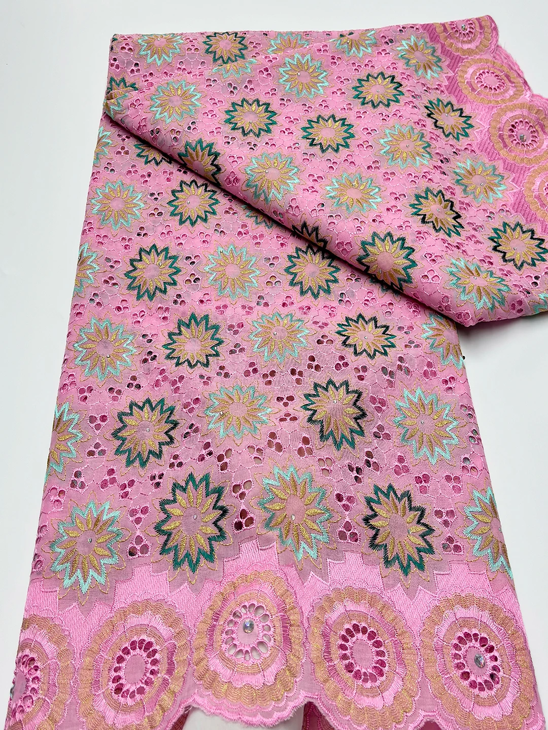Original Austria Pure Cotton Lace Fabric 2024 High Quality Swiss Voile Embroidery Stones Lace Fabric For Women Celebration Dress