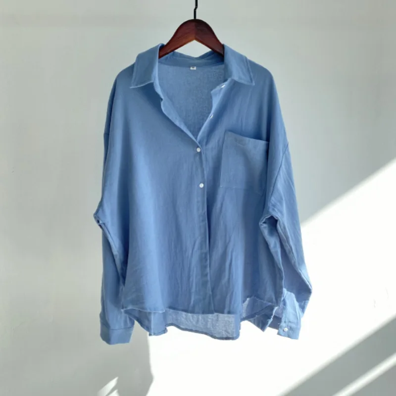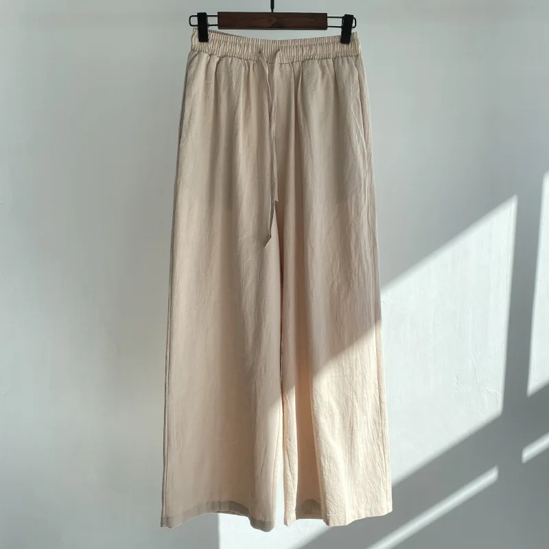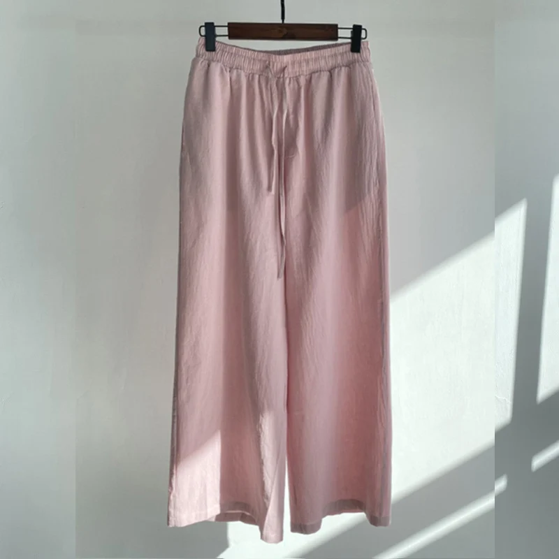 Pants Set Women Shirts Wide Leg Elastic Waist Cotton Linen Casual Sets Elegant Loose Long Sleeve Lapel Spring Shirt Y2k Suit