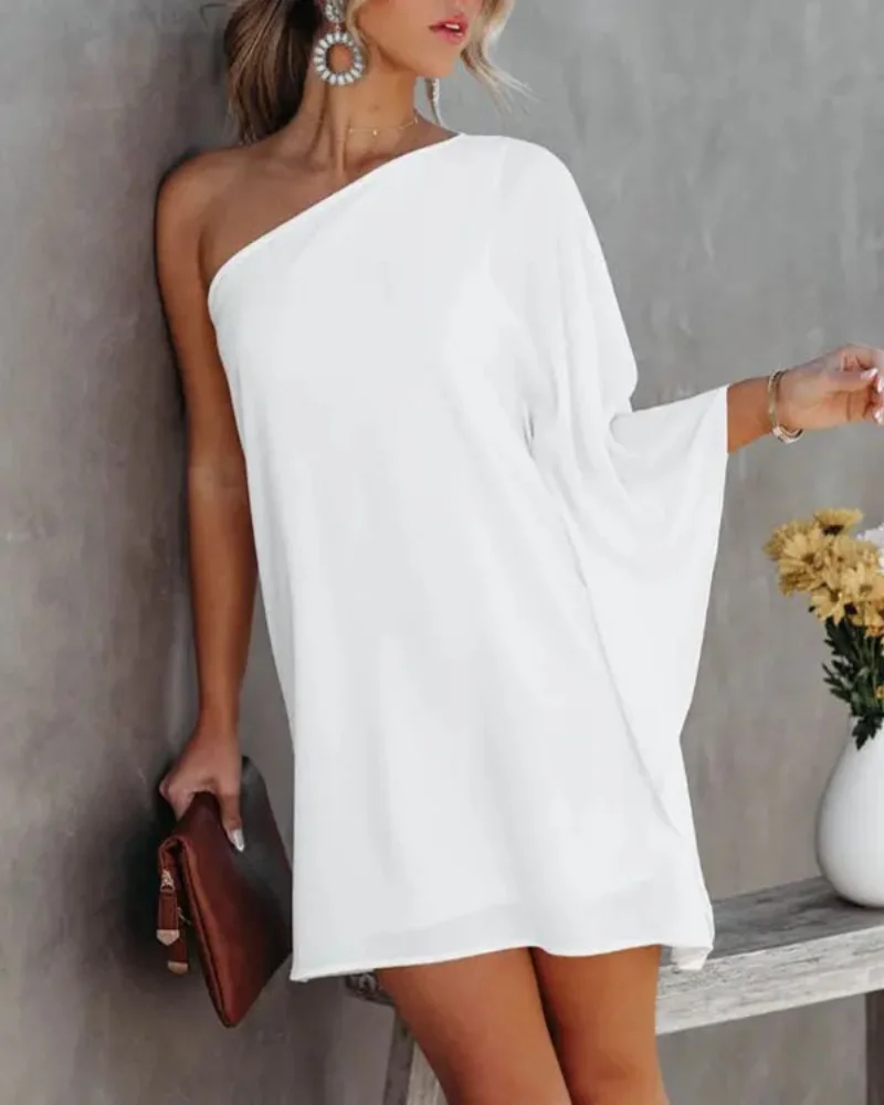 Party Dress Sexy One-Shoulder Long Sleeve Halter Loose Irregular Sundress Cover-Ups Elegant Women Gradient Color Beach Dress