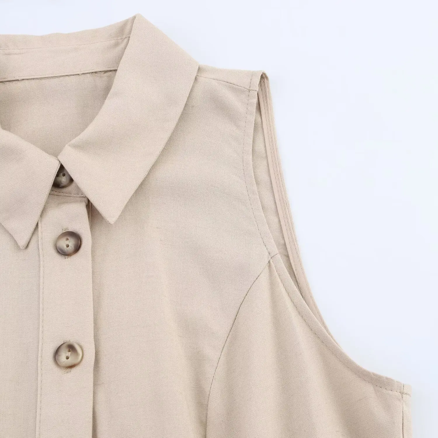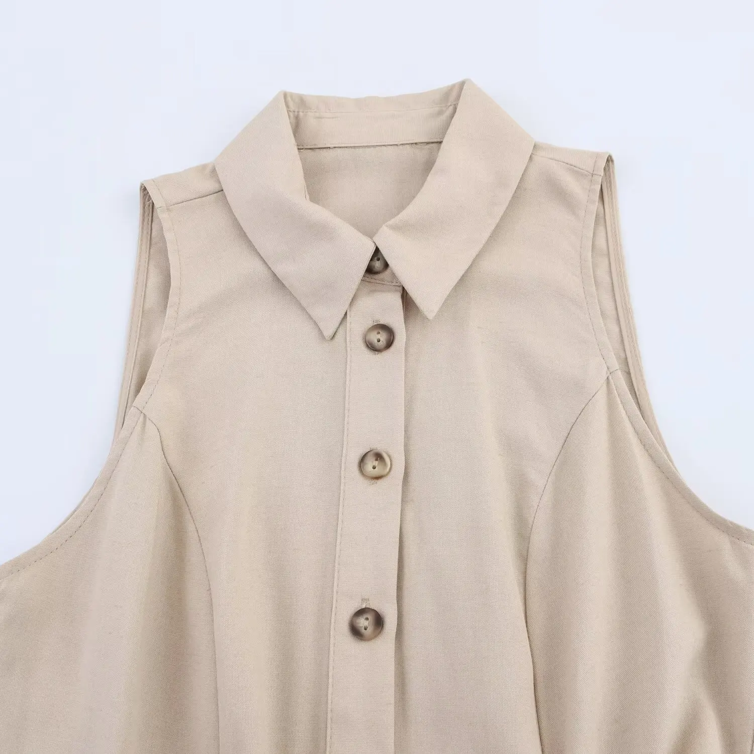 PB&ZA2025 Summer New Arrivals Women's Casual Fashion Simple Commuter Belt Sleeveless Lapel Mini Dress