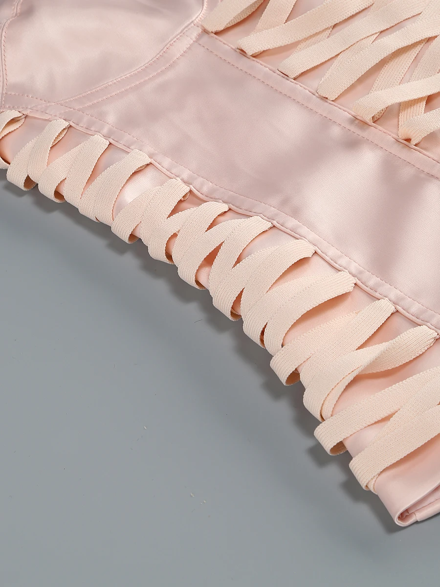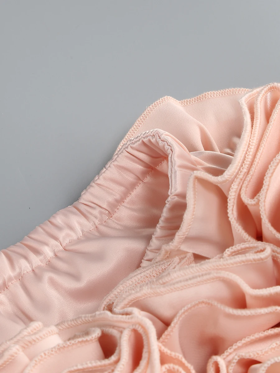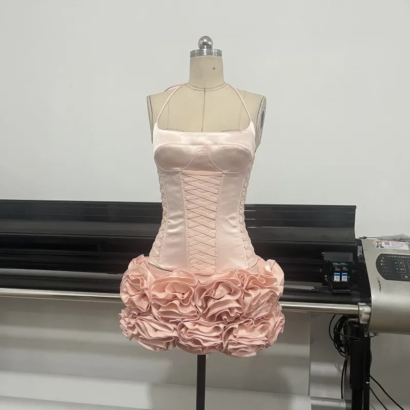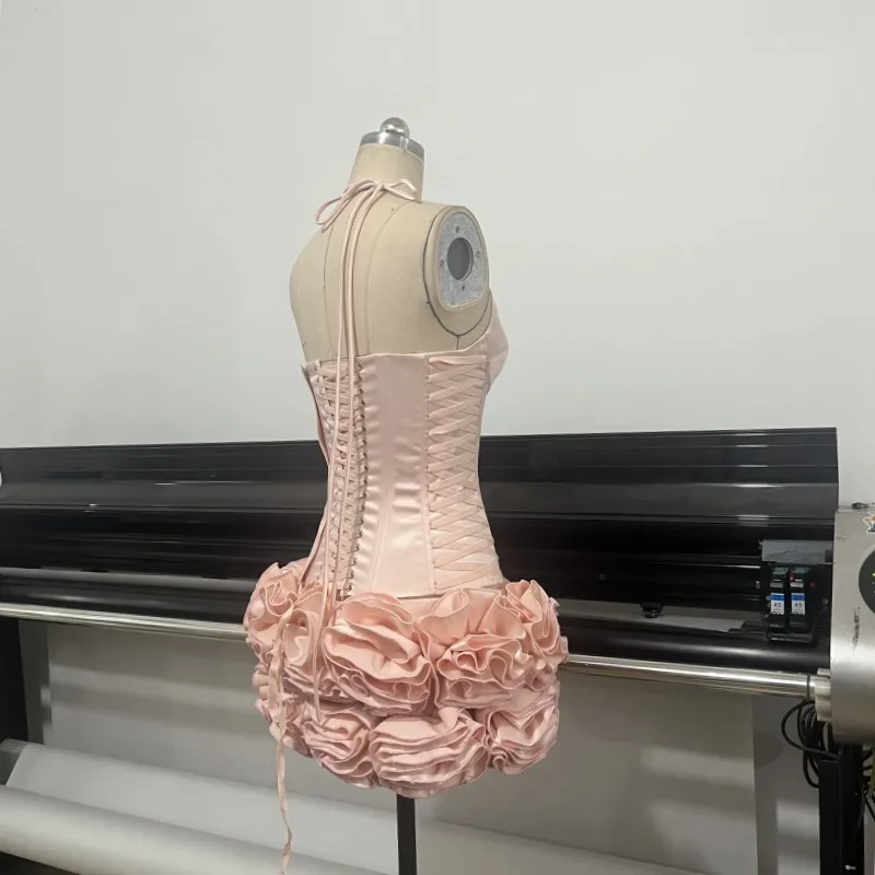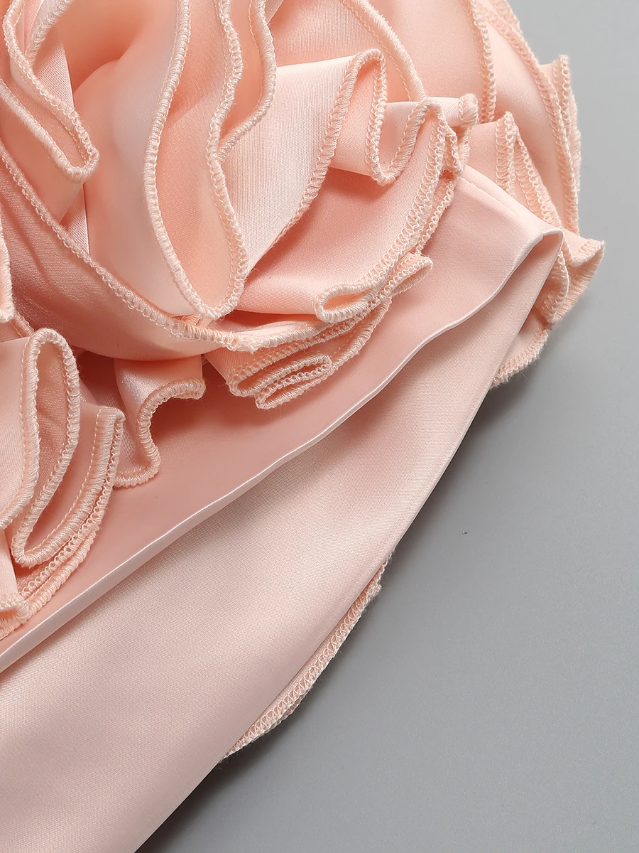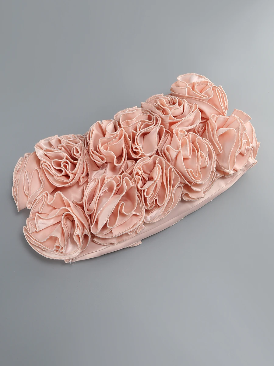 Pink Prom Dress Strapless Pink Structured Top With Floral Embellished Mini Skirt Bodycon Celebrity Party Cocktail 2 Pieces Set