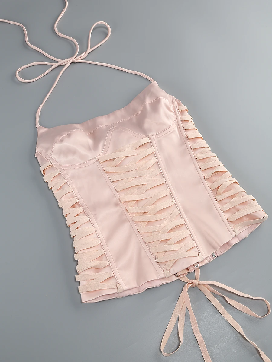 Women's jumpsuit 2025 summer new sleeveless new fashionable hollow camisole buckle comparison mesh tight jumpsuit