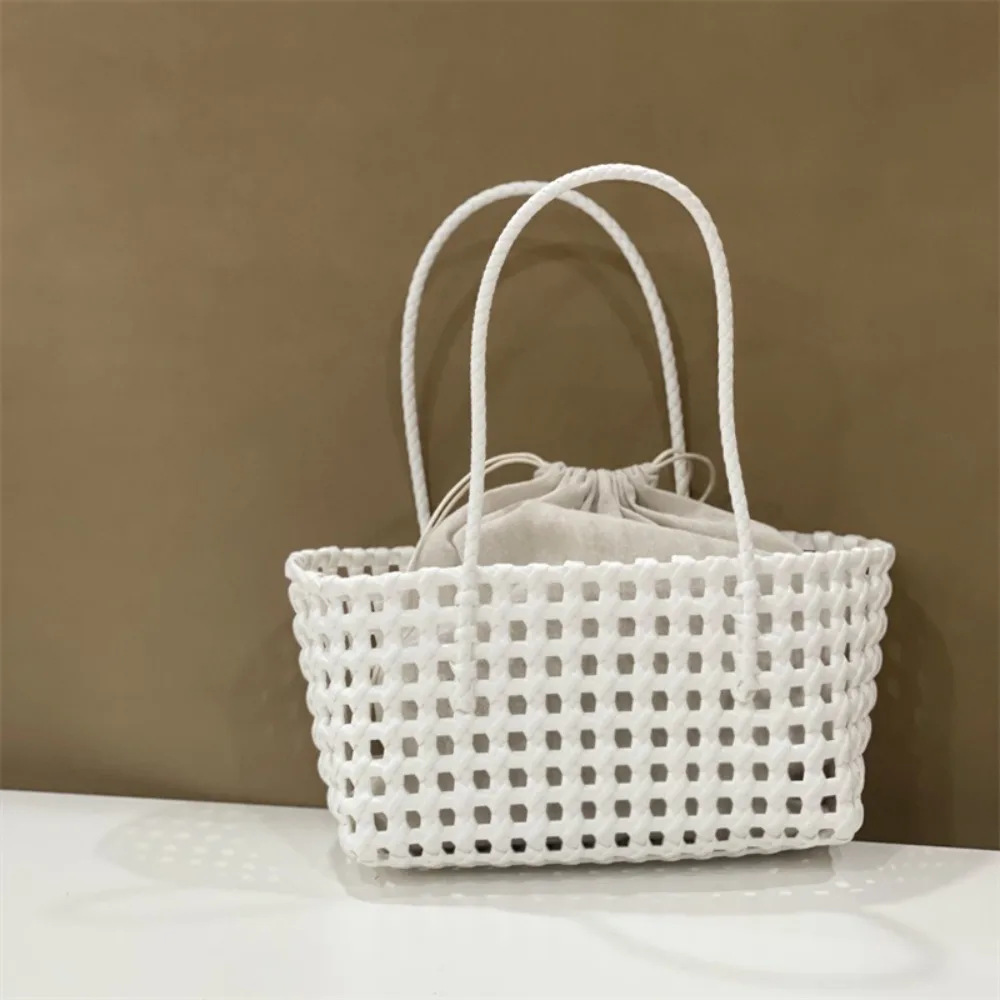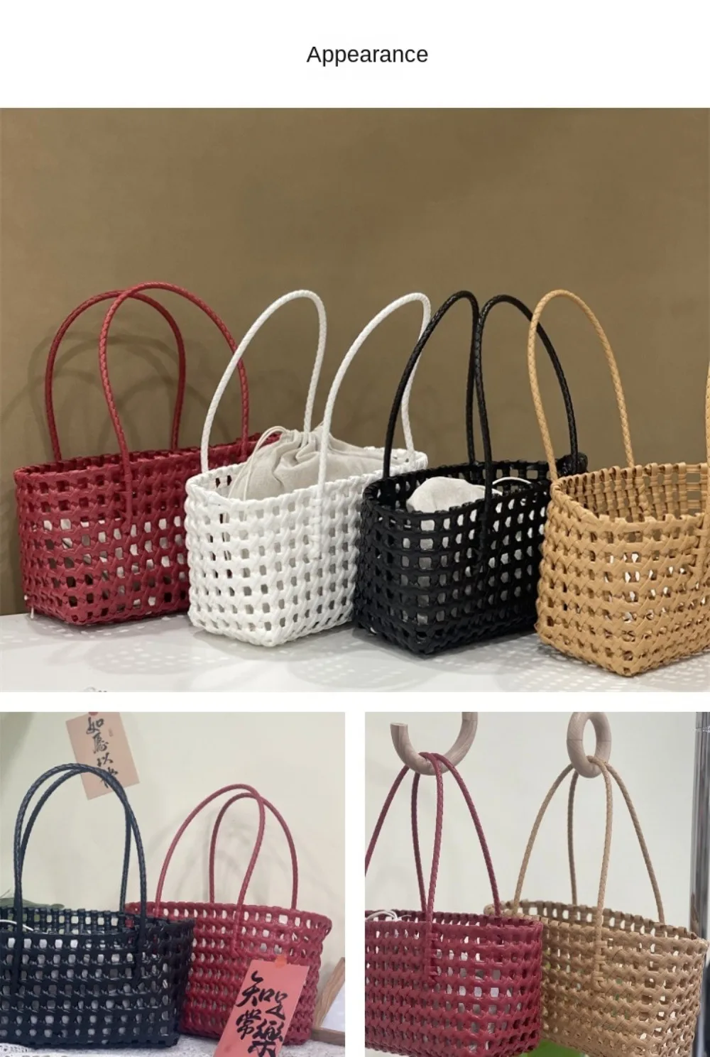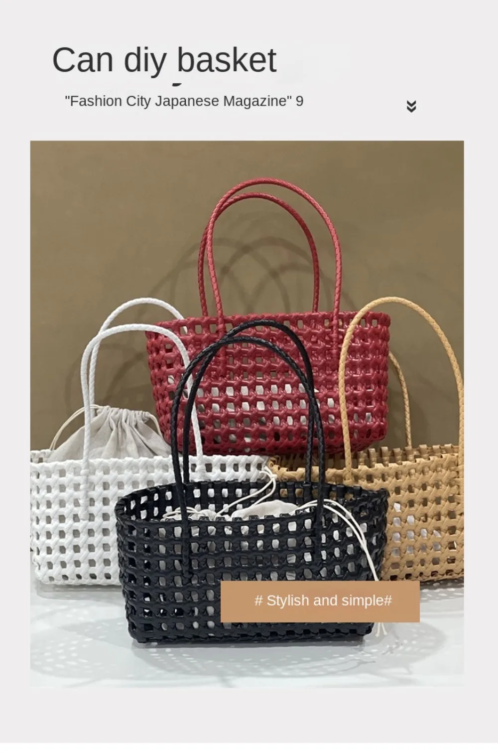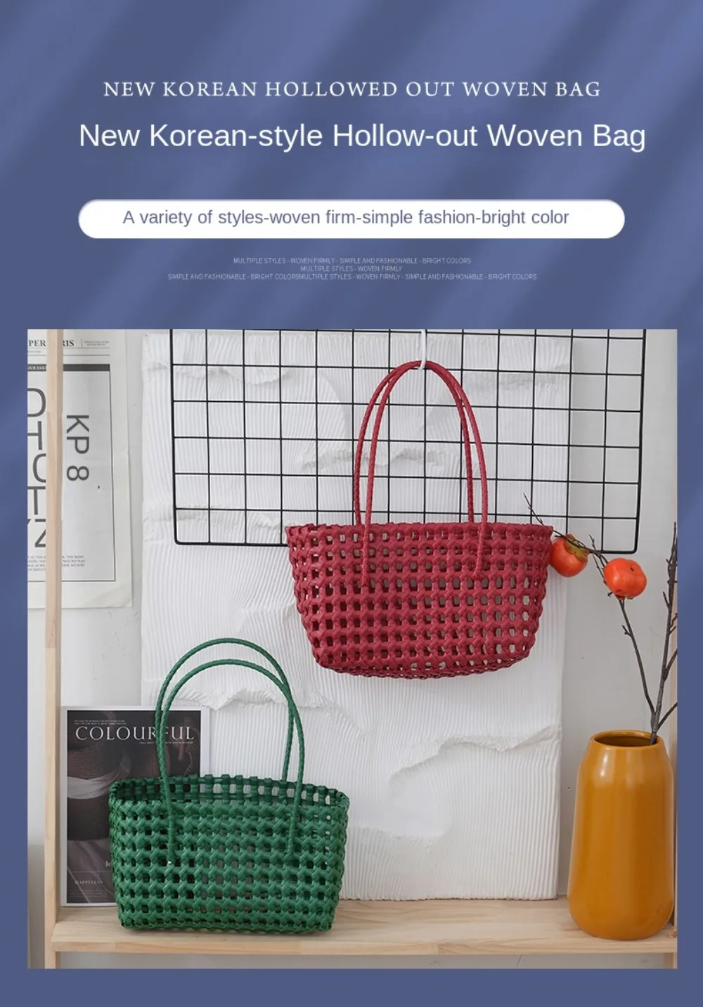 Plastic Hollow Weave Bag Countryside Style Bohemian Style Beach Tote Bag Large Capacity Bucket Bag Vegetable Basket Bag