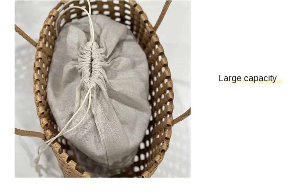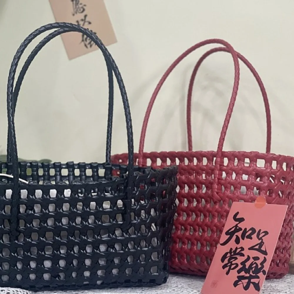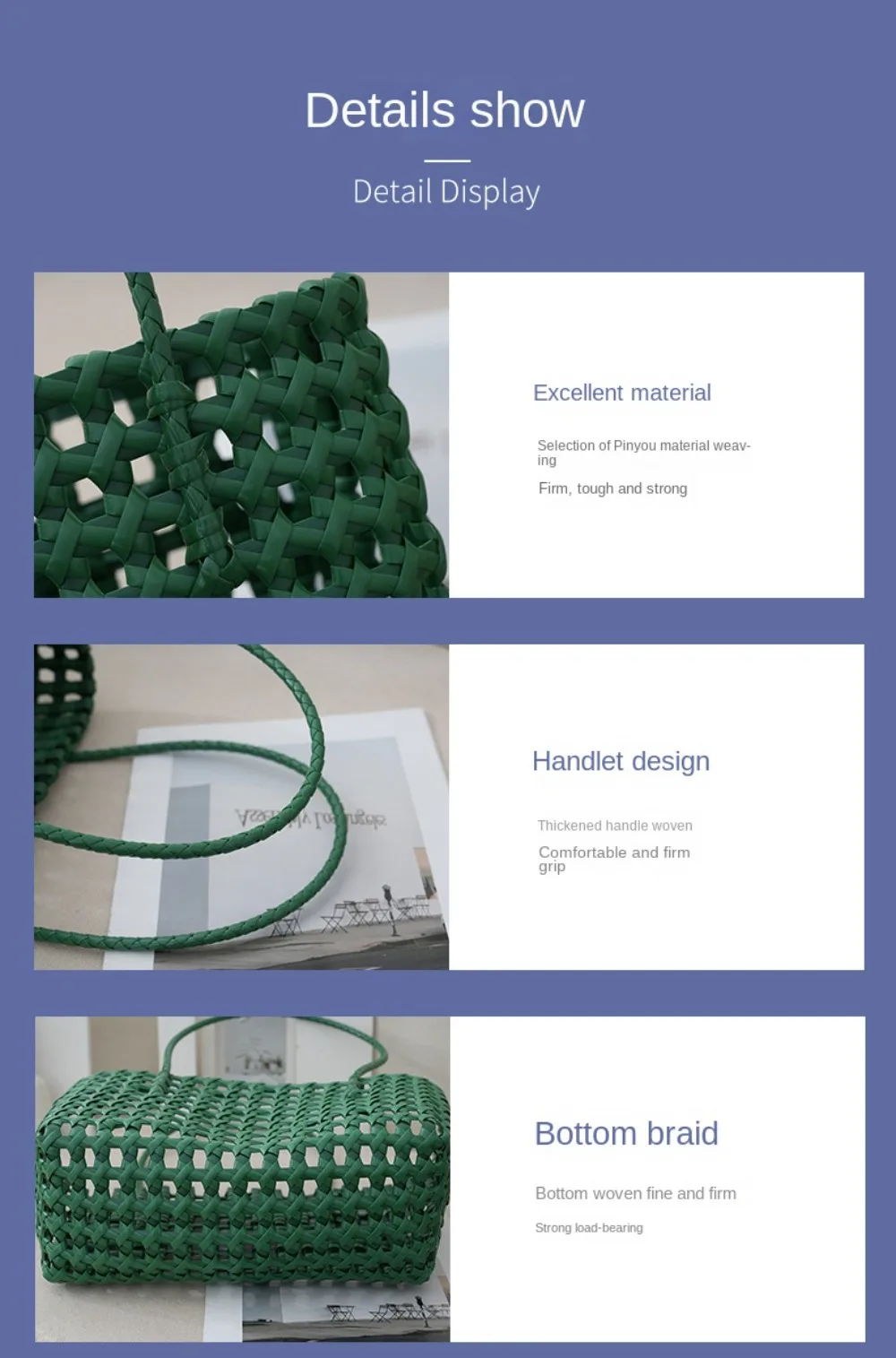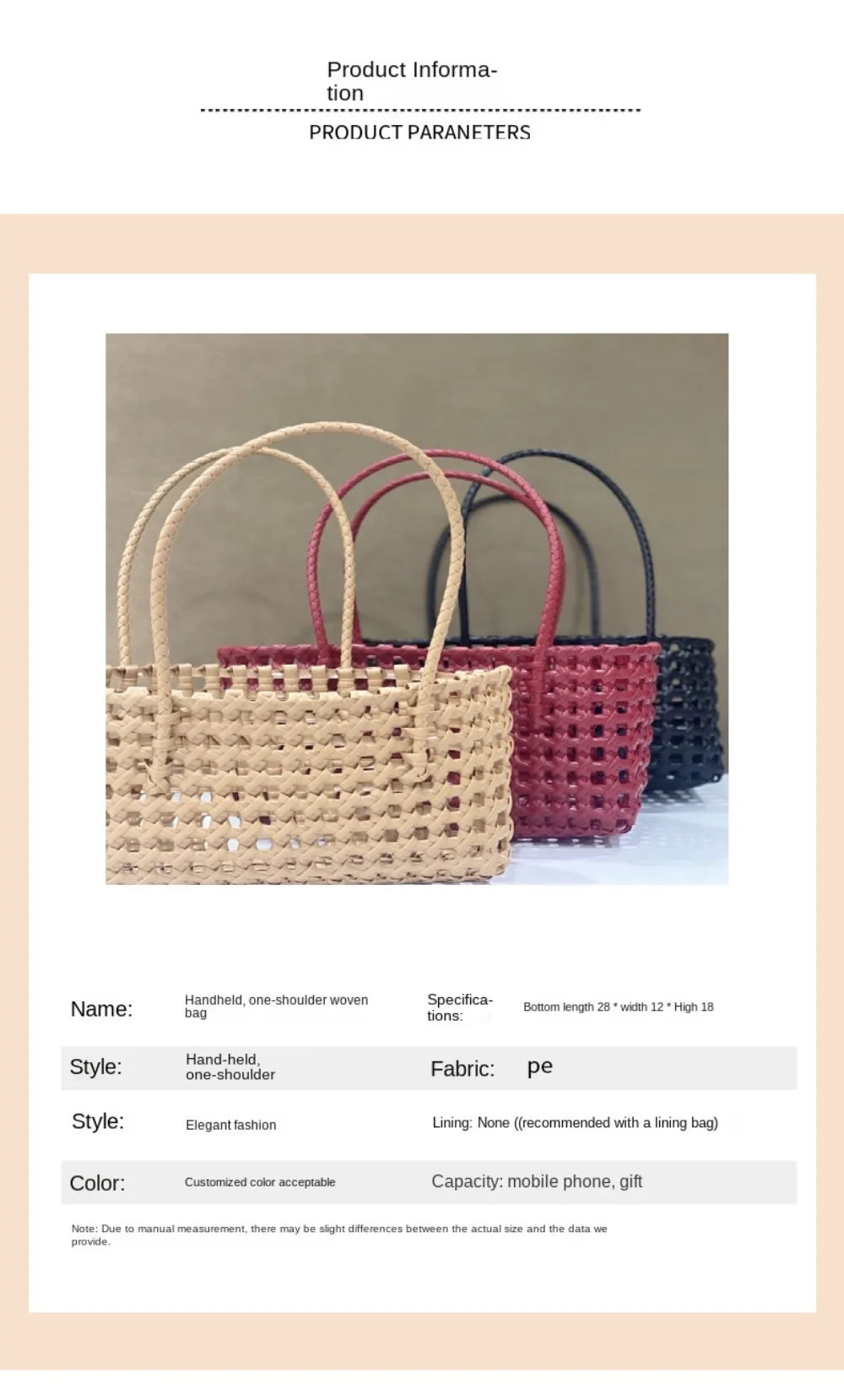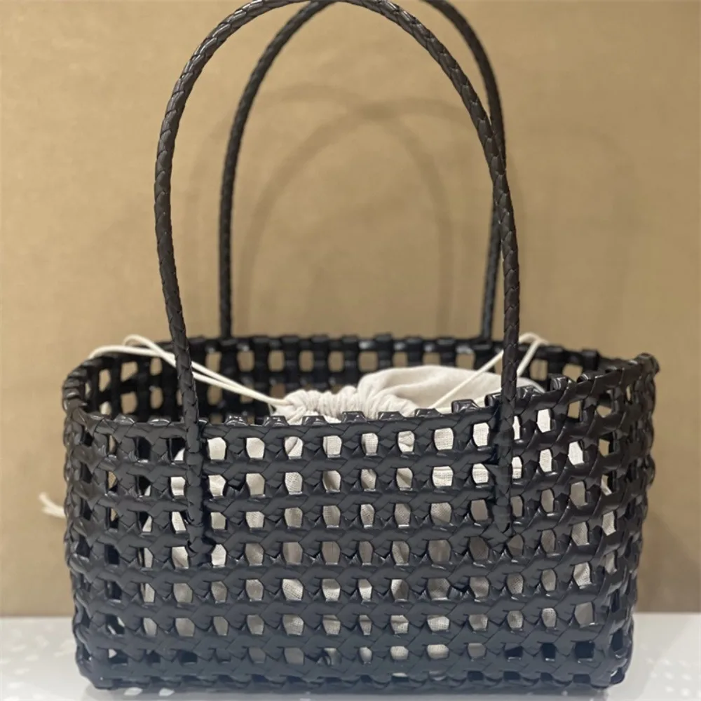 Plastic Hollow Weave Bag Countryside Style Bohemian Style Beach Tote Bag Large Capacity Bucket Bag Vegetable Basket Bag