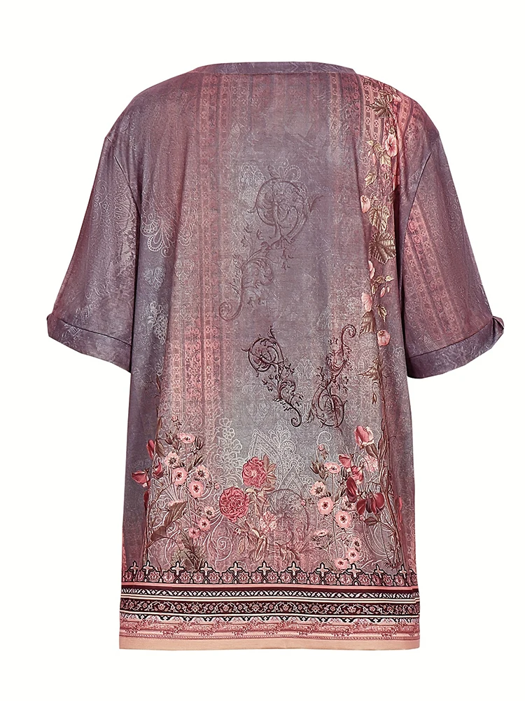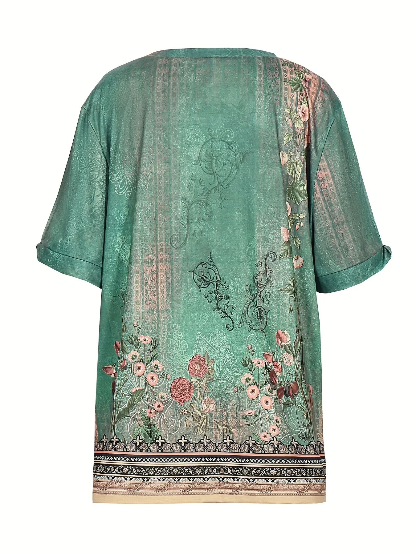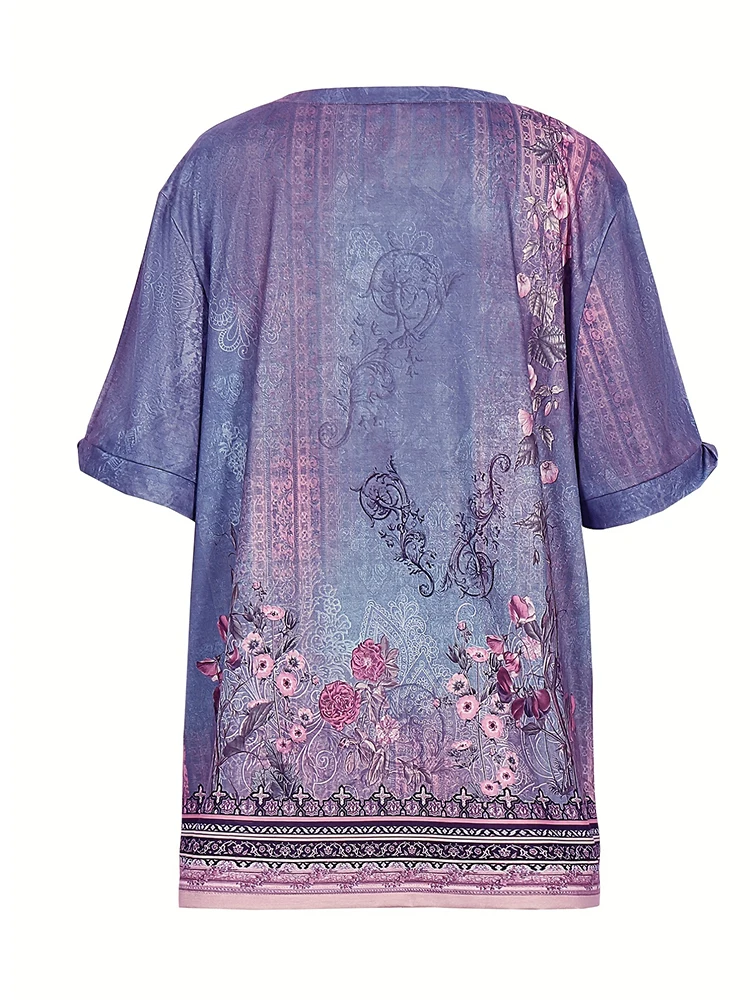 Plus Size 2024 Summer New Women's Printed Pattern Round Neck T-Shirt Short Sleeve Pullover Best for Summer