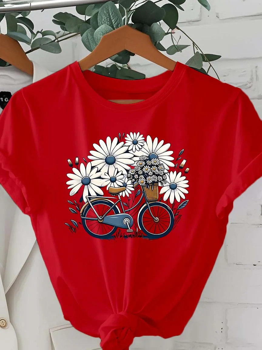 Plus Size Artistic Floral Bicycle Graphic Minimalist Design Elegant Fashion Tee