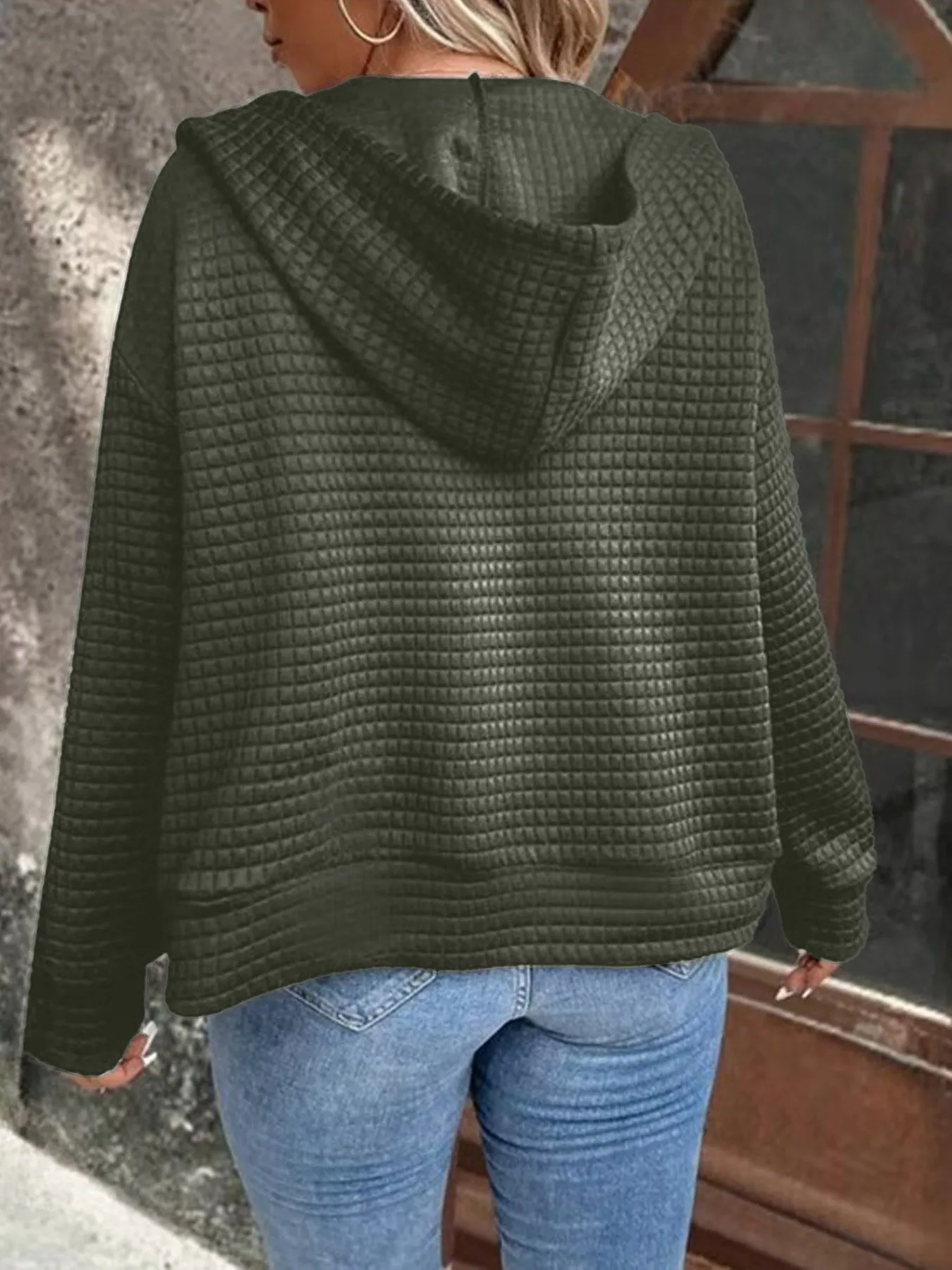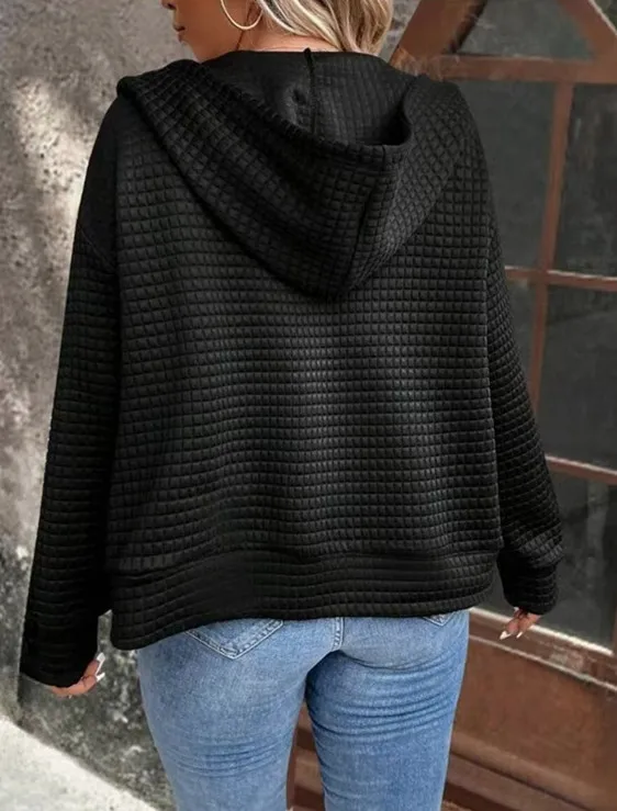 Plus size European and American cross-border autumn new casual solid color pocket zipper hooded jacket