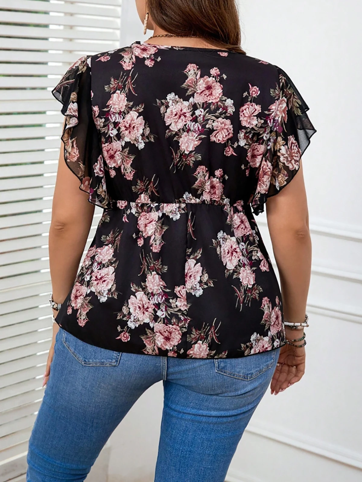Plus Size Floral Printed Women’s Shirt Blouse Elegant Ruffle Sleeveless Lace-up V-Neck Female Summer Top Casual Vacation Blouses