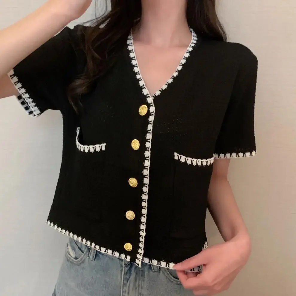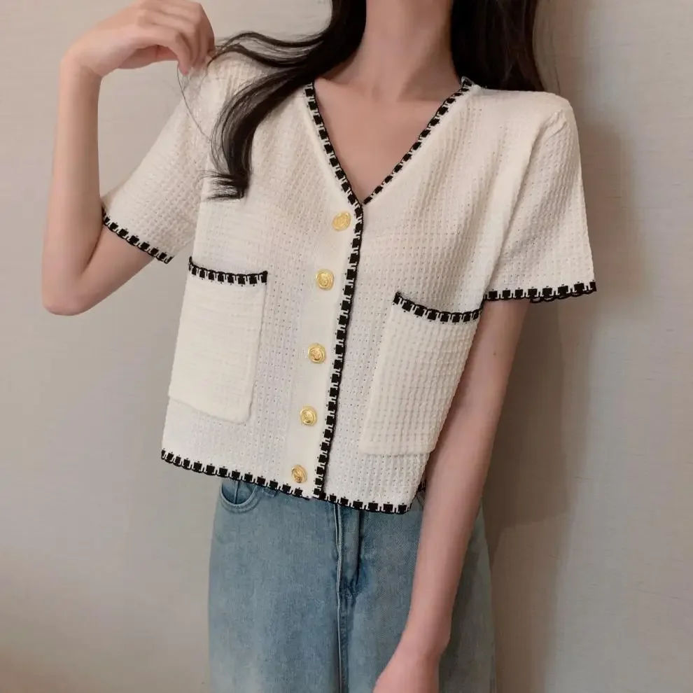 Plus Size Knitted Short Sleeve Open Cardigan for Women Elegant Slimming Style Summer Thin Material Big Size Fashionable