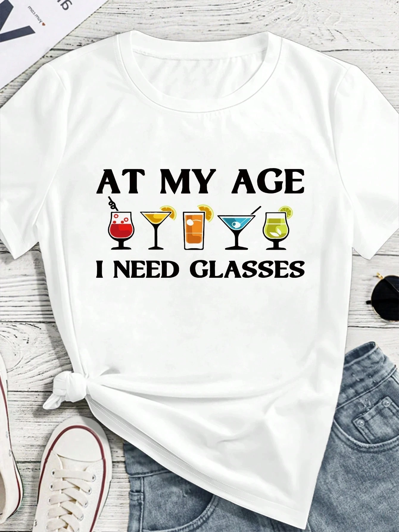 Plus Size SHEIN LUNE Fashionable Minimalist Wine Glass Print Casual Short Sleeve T-Shirt Graphic Tees Women Tops