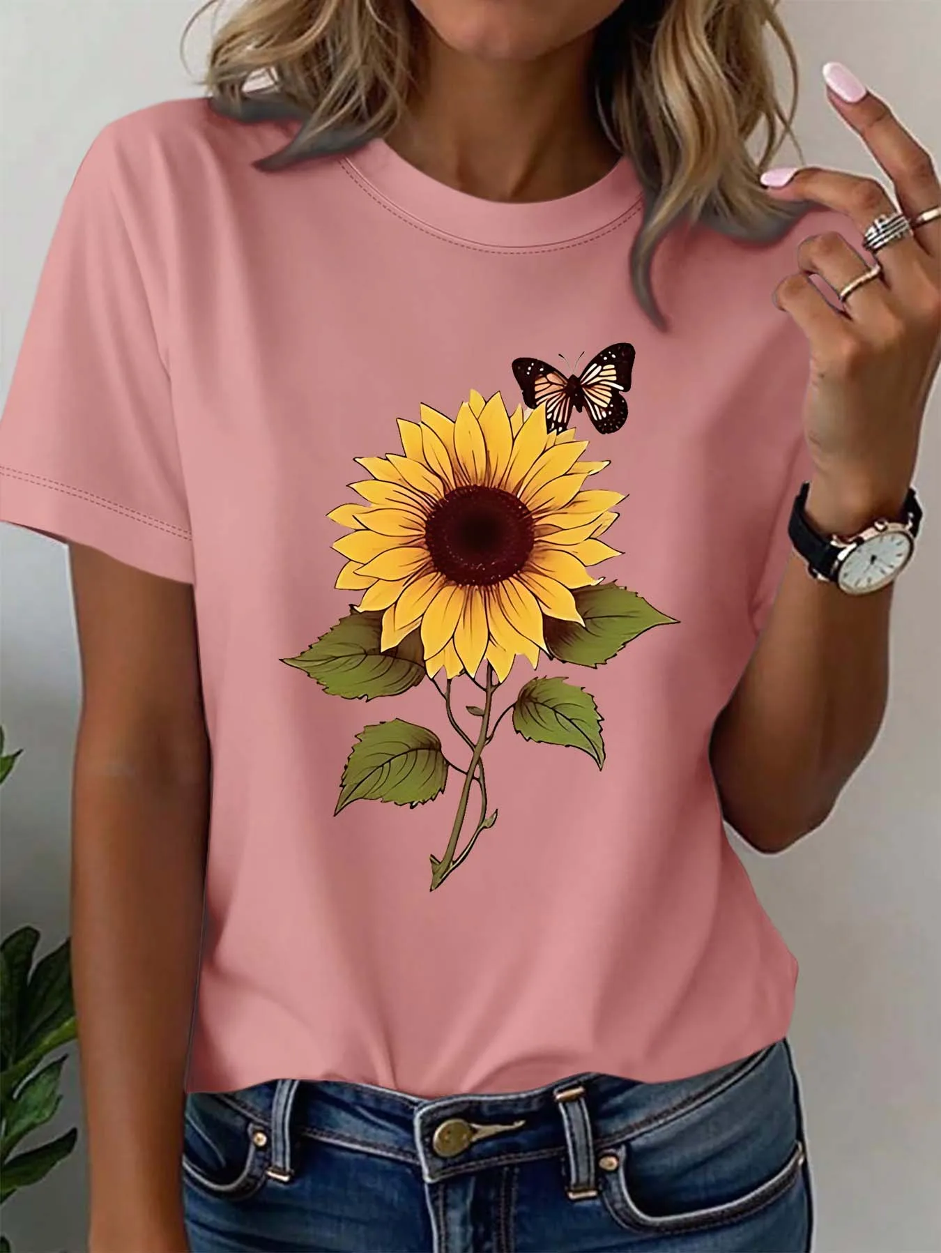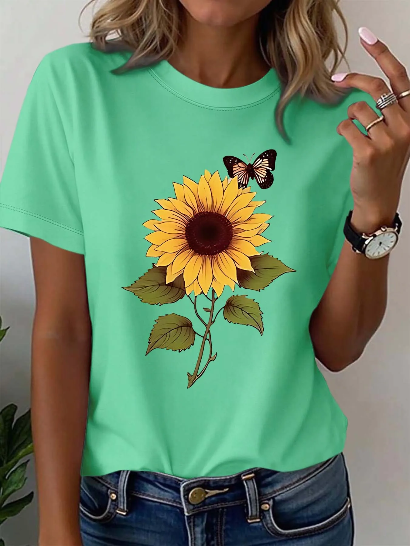 Plus - Size Sunflower & Butterfly Graphic Tee, Short - Sleeve
