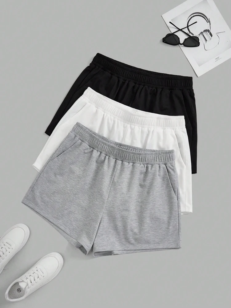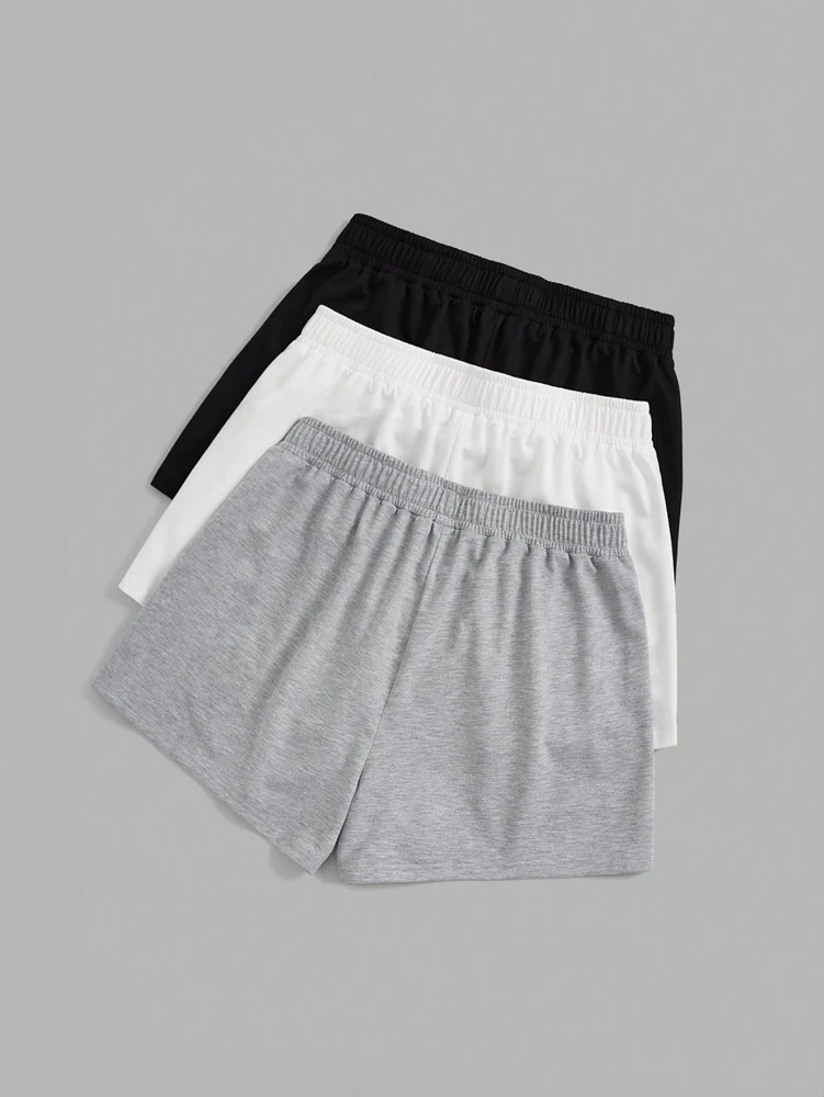 Plus Size Women's Elastic Waist Biker Shorts 3 Piece Running Workout Yoga Shorts Best for Summer Polyester