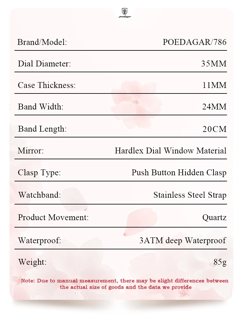 POEDAGAR Original New Woman Watch Stainless Steel Waterproof Luminous Ladies Wristwatch Date Week Elegant Quartz Women's Watches