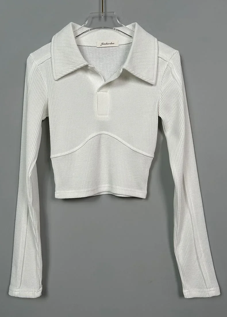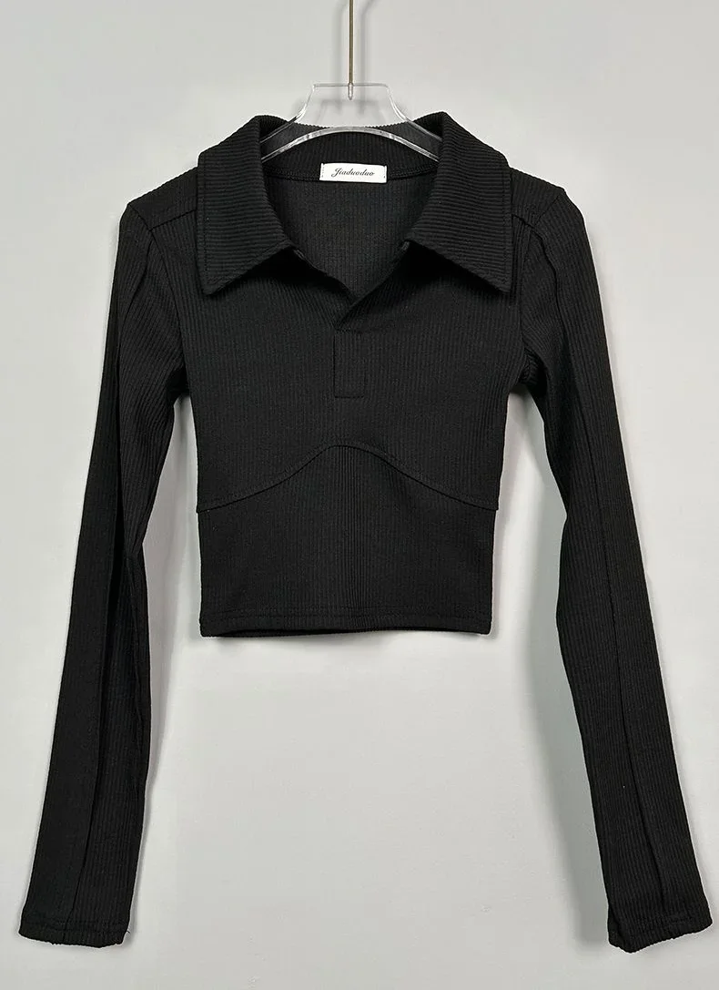 Elegant Coquette Women's Polo Neck T-Shirt - Long Sleeve, Chic Style, Effortless Elegance