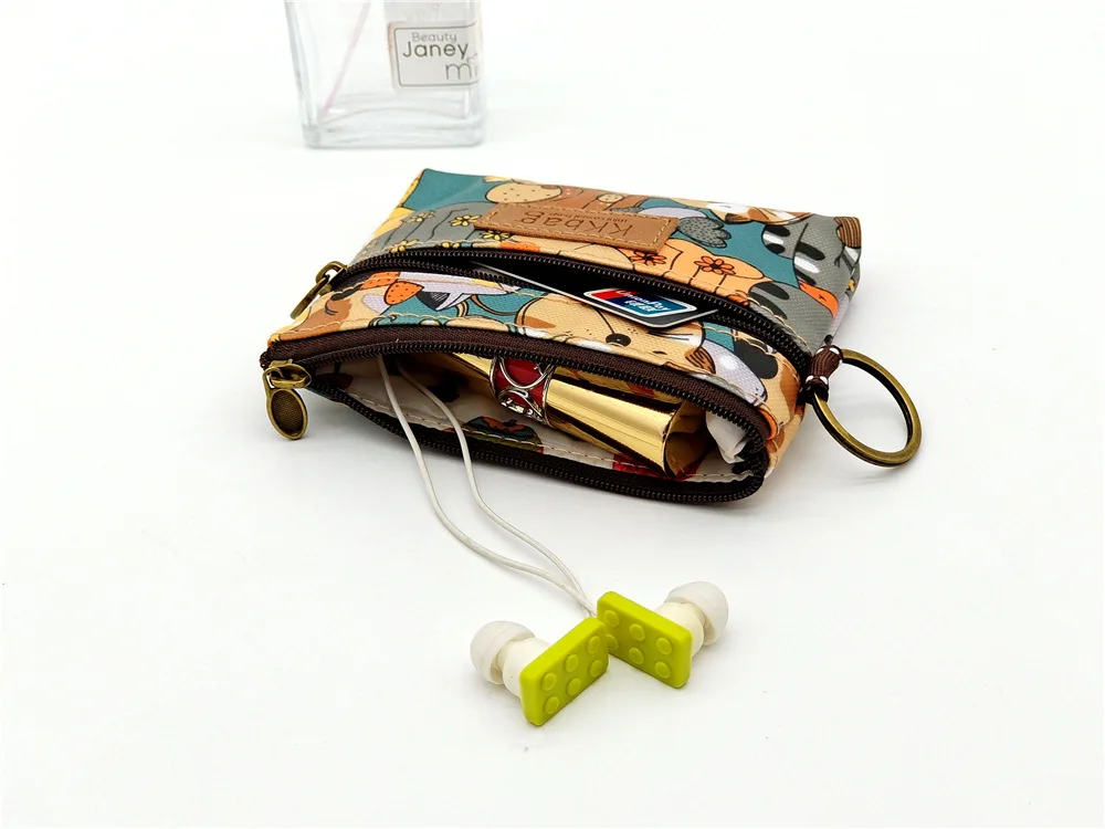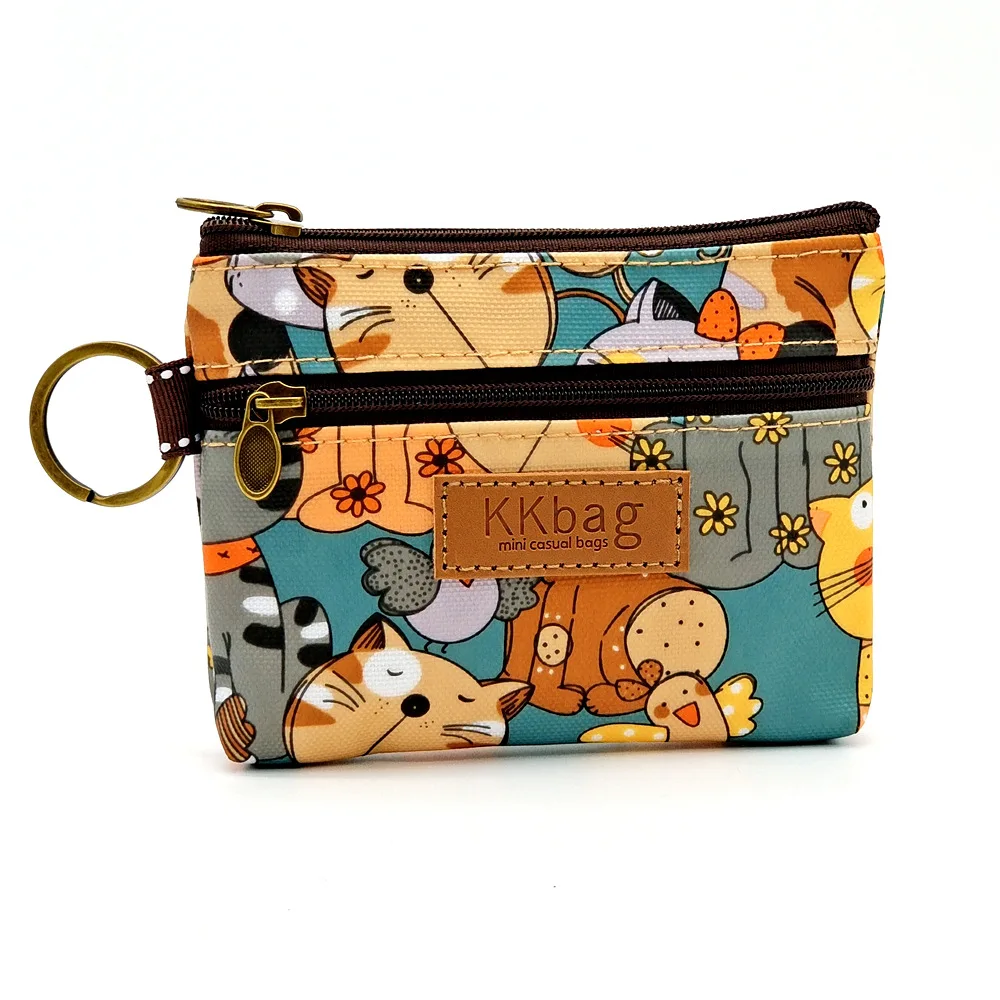 Women's Polyester Cartoon Prints KeyChain Wallet Ladies Money Bag Small Card Organizer Key Pouch Coin Purse for Children Girls Boys