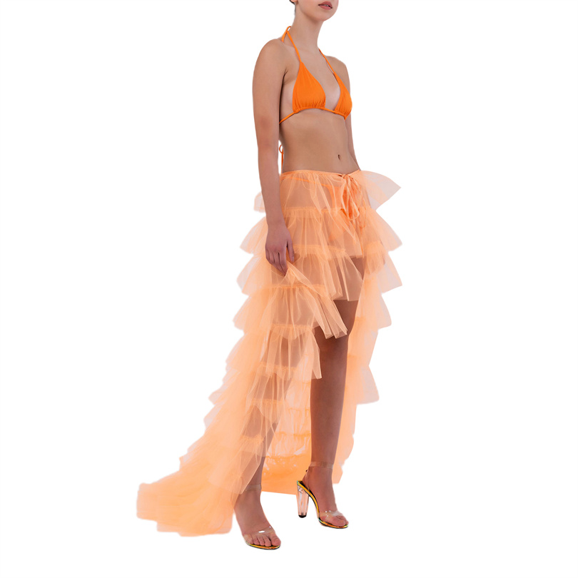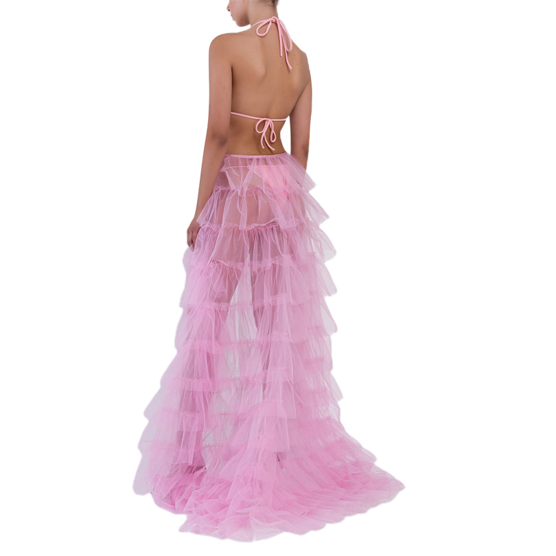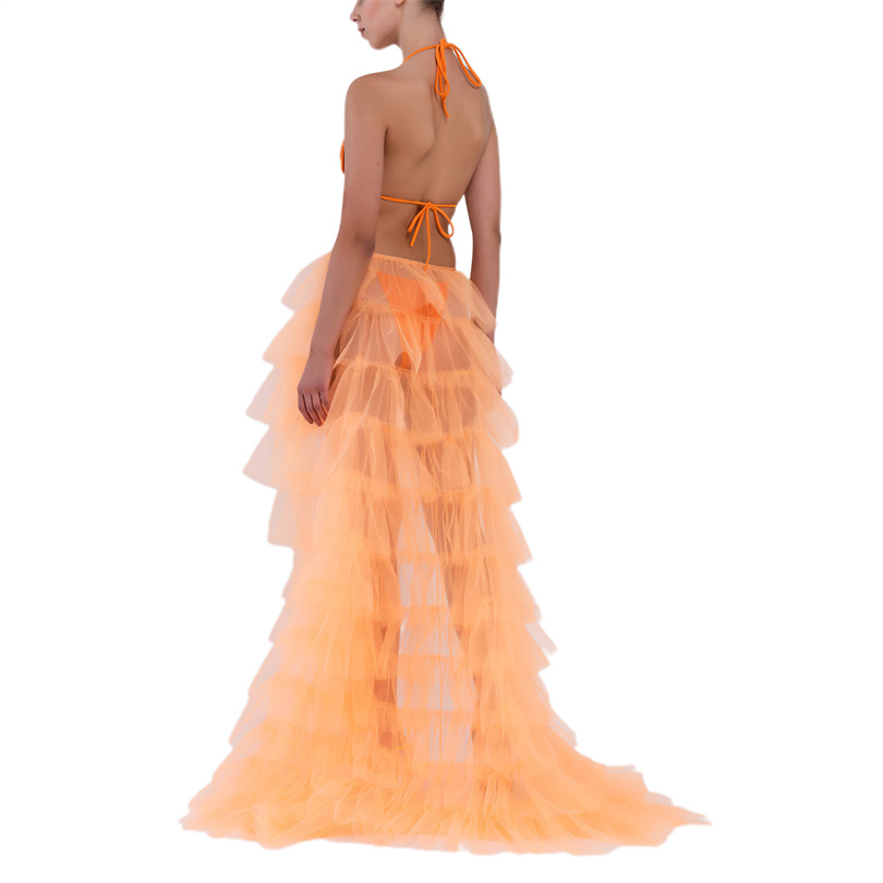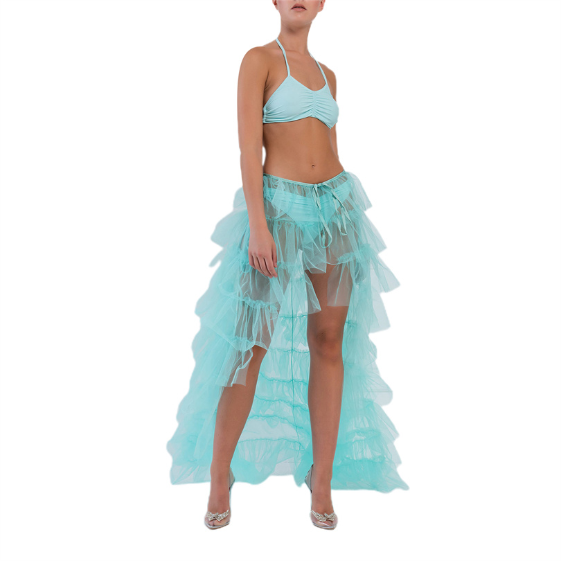 Puloru Tied-Up Mesh Tulle Long Skirts Elegant Party Wedding Wear for Women Solid Color Irregular Floor-Length Layered Skirts