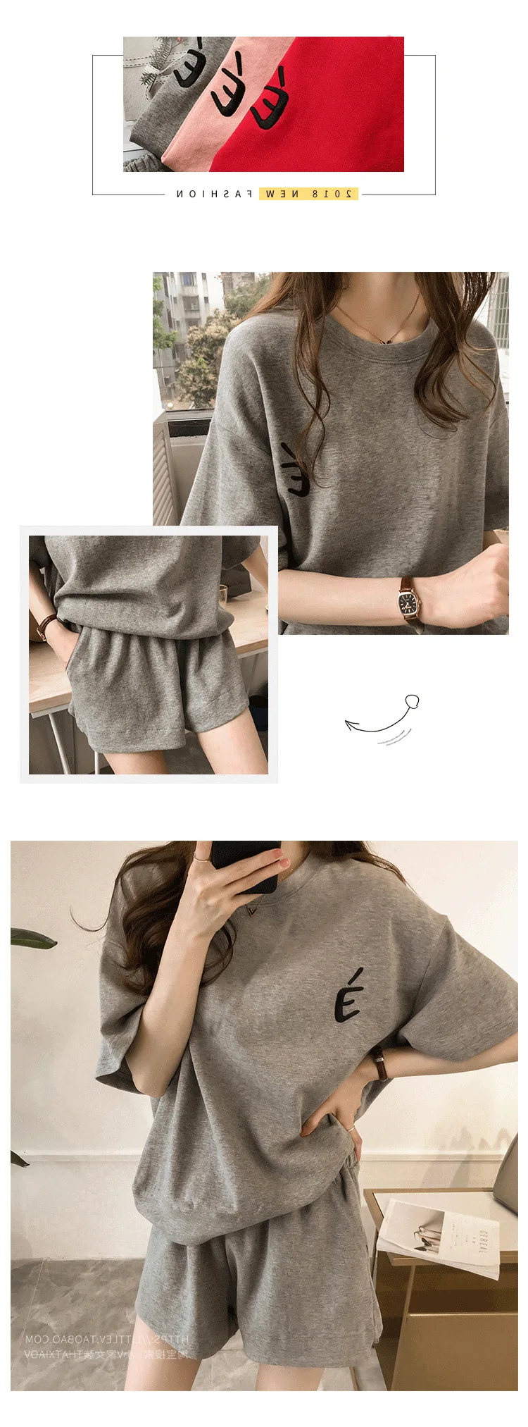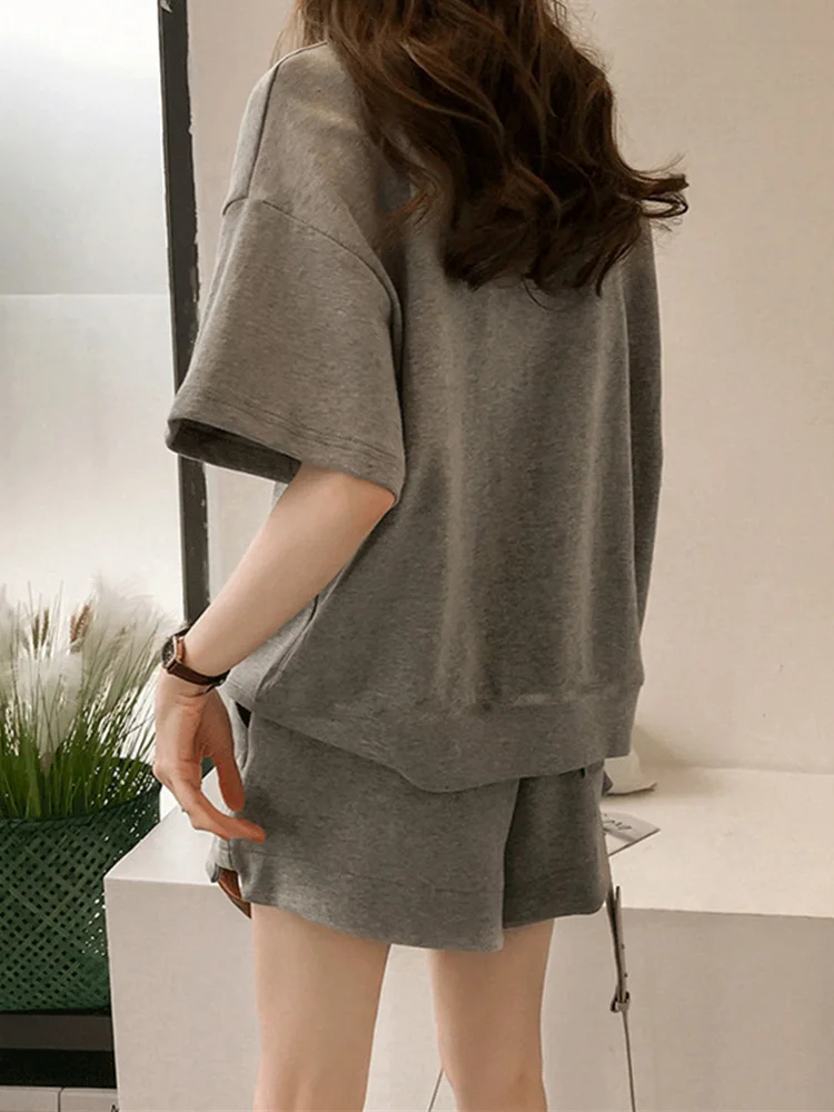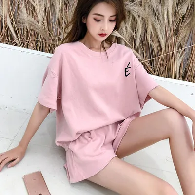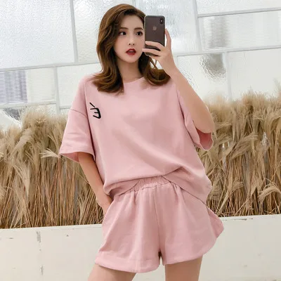 Red Two piece Cotton Women's Sportswear Set 2025 Summer New Round neck Short sleeved Top+Shorts Women Loose Casual Clothing