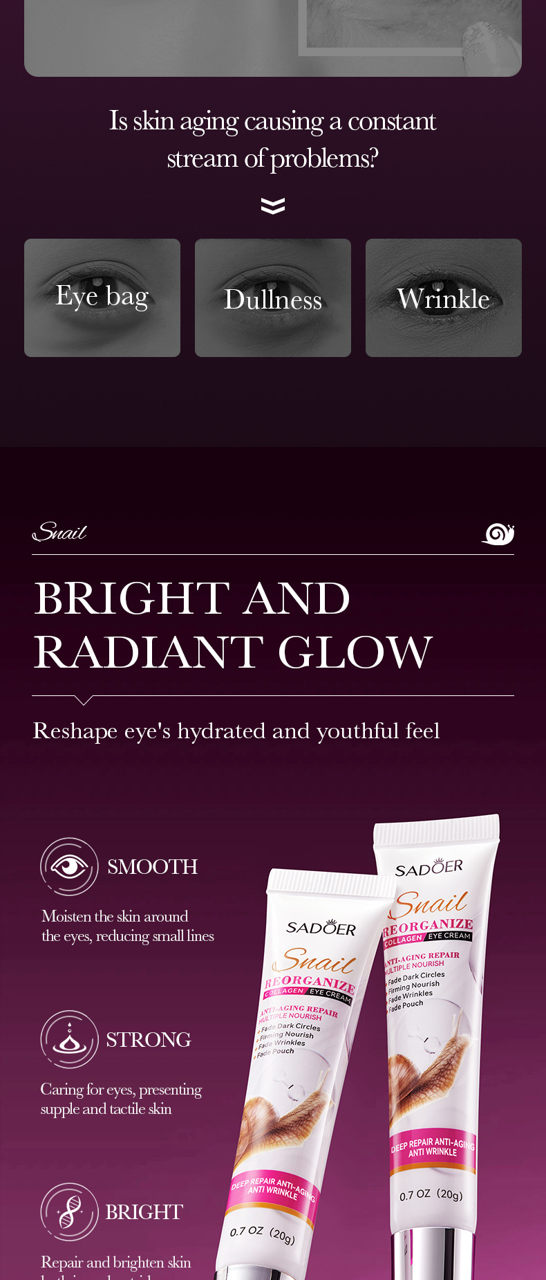 Remove Eyes Bags Eye CreamSnail Collagen Anti Dark Circles Anti-wrinkleMoisturizing Firming Beauty Eyes SkinCare Products