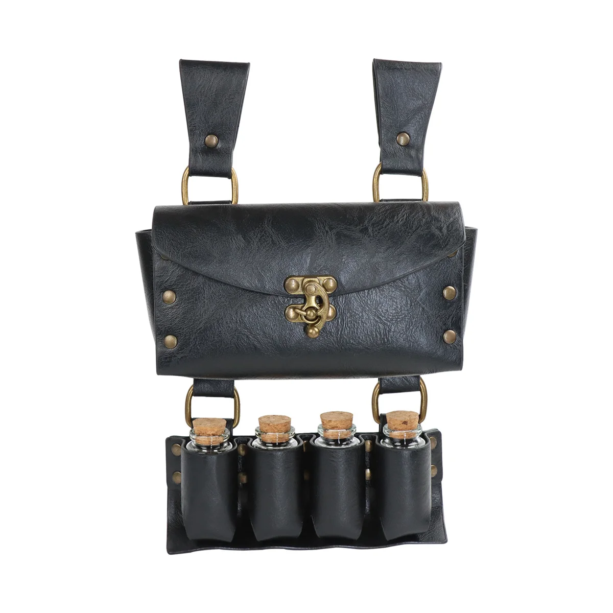 Renaissance Leather Belt Medieval Wizard Alchemy Glass Magic Bottle Cork Bottle Stopper Copper Coin Waist Bag Cosplay Belt