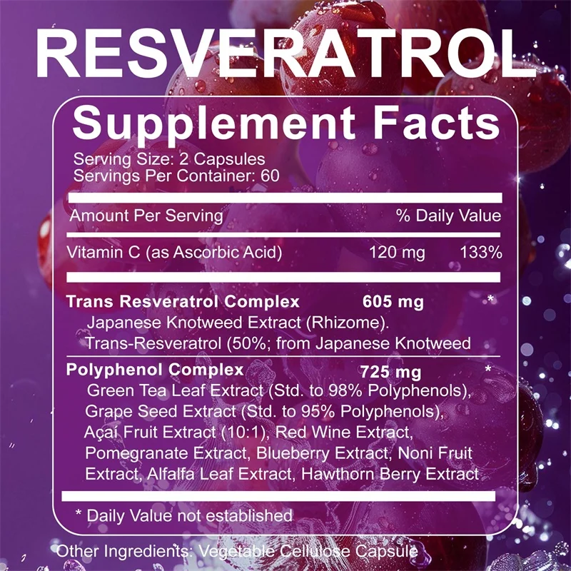 Resveratrol Extract - Helps Support Cardiovascular Health, Promotes Skin Radiance, and Antioxidants