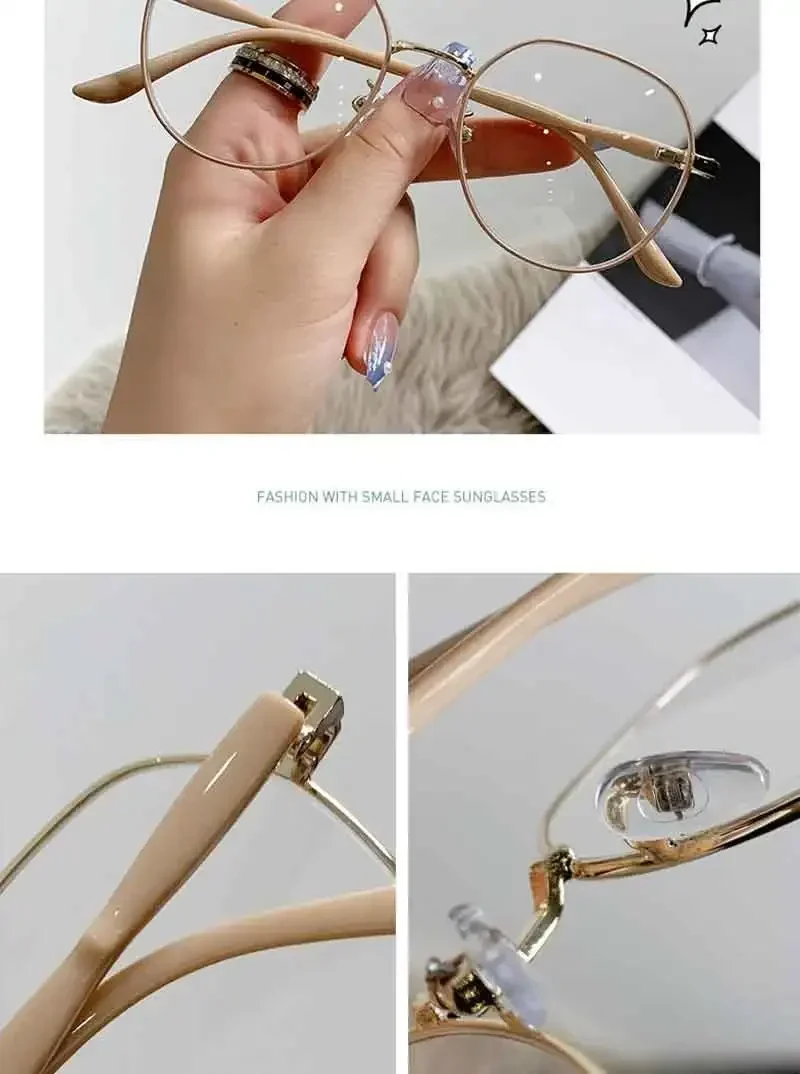 Ins Metal Round Decor Round Glasses Women Anti Blue Light Computer Glasses Black Metal Spectacle Frame 0 Diopter 2024 Glasses