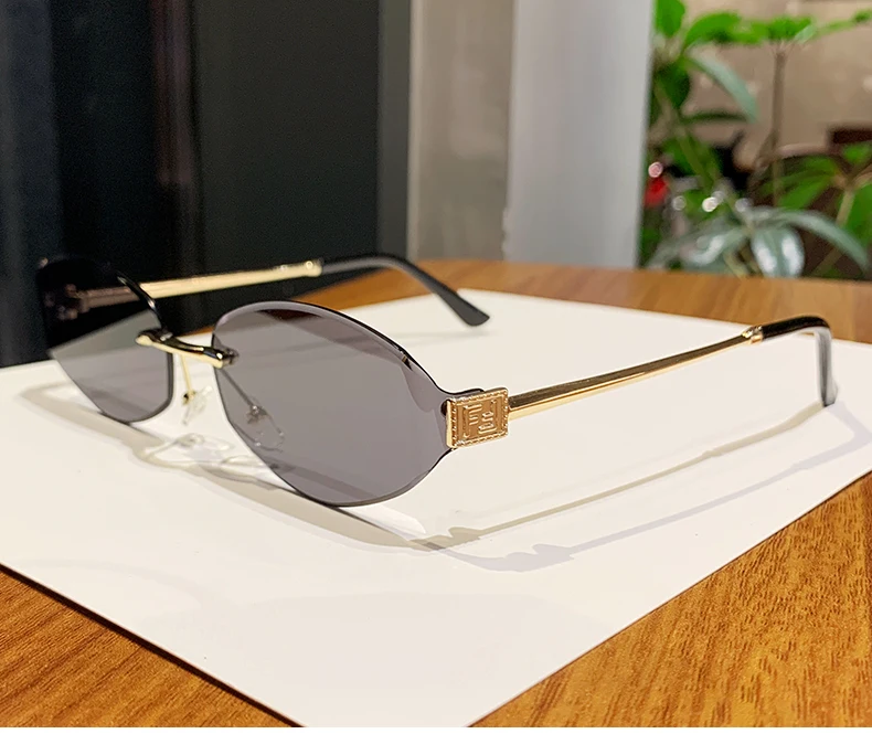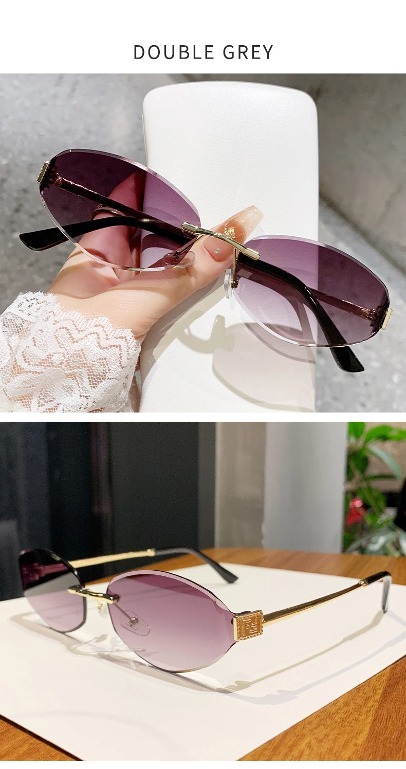 Retro Frameless Oval Concave Design Y2k Personalized Sunglasses Trendy Uv Resistant Street Photography Sunglasses 90275