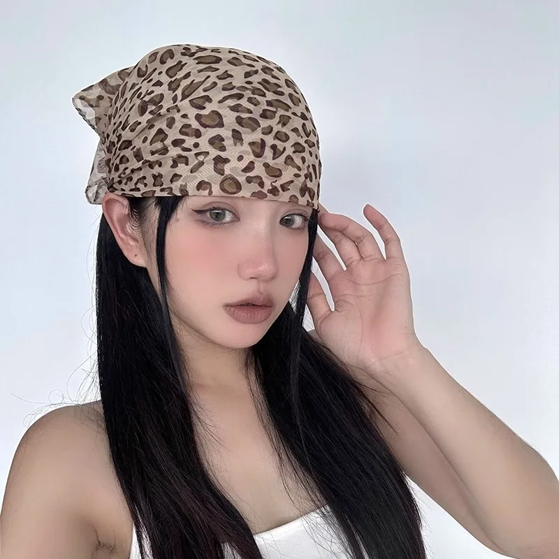 Retro Leopard Print Square Scarf for Women Satin Thin Edge Scarves Head Band Fashion Y2K Lady Hair Shawl Wrap Female Neckerchief