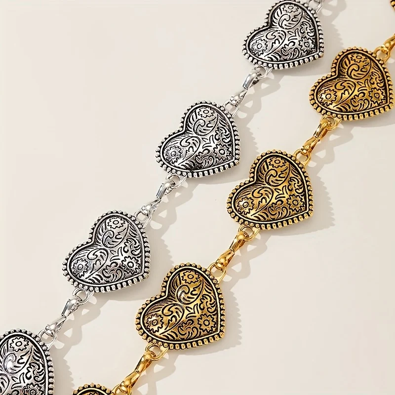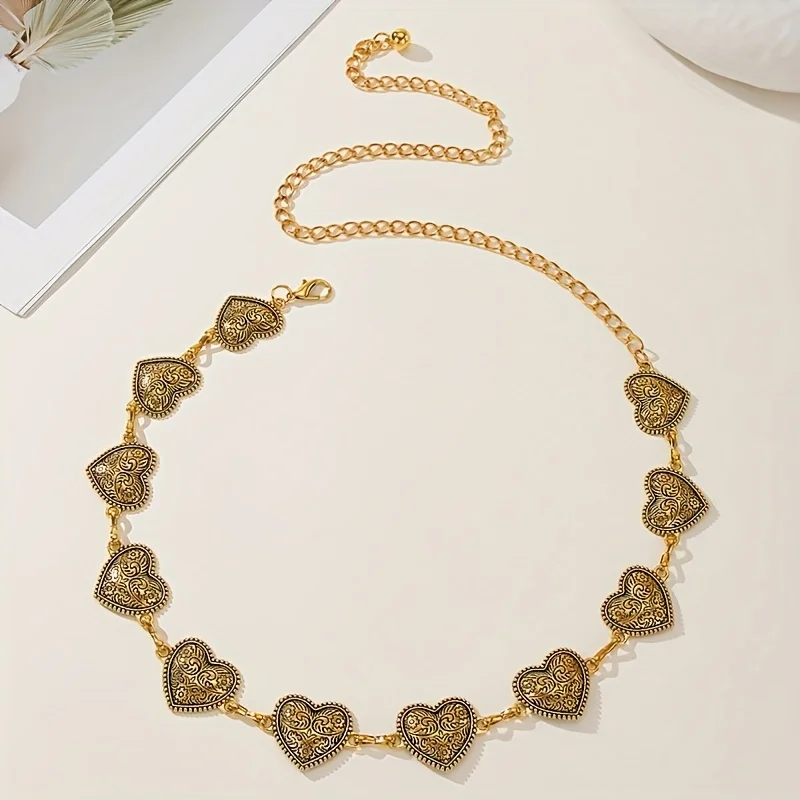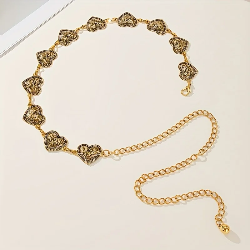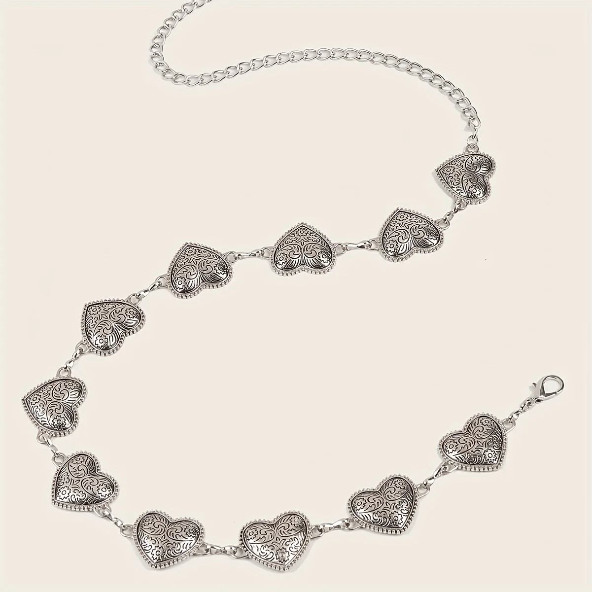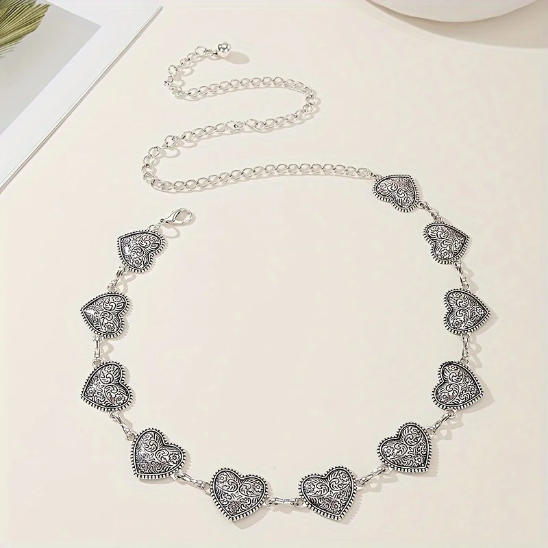 Retro Y2K adjustable metal waist chain, valentine carved retro heart belt decoration, Bohemian punk style fashion accessories.